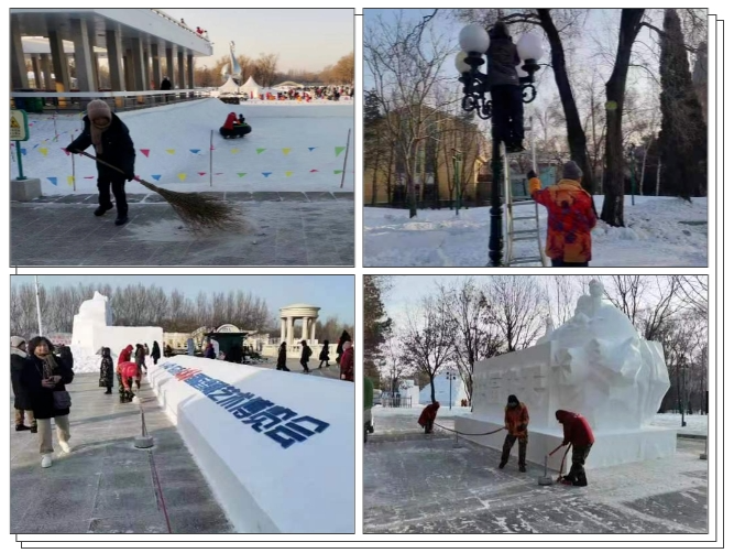 经过连日来紧锣密鼓的前期准备,终于迎来了第36届太阳岛雪博会开园试运营。在资产公司班子的坚强领导下,物业保障部全员坚守一线,进行路面除冰、卫生保洁和垃圾清运等工作,为雪博会试开园首日迎来的第一批游客提供了安全、便利、整洁的游览环境。