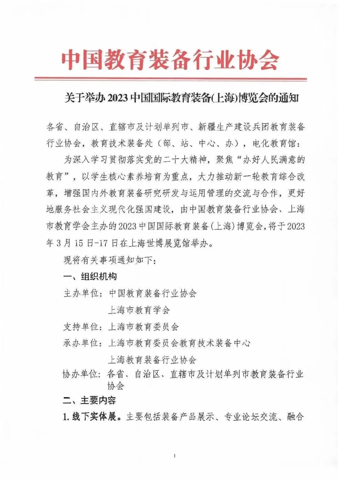 关于举办2023中国国际教育装备(上海)博览会的通知