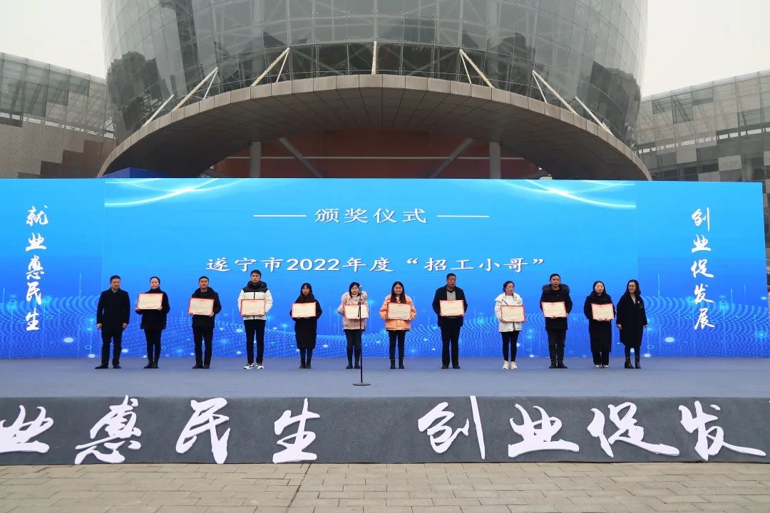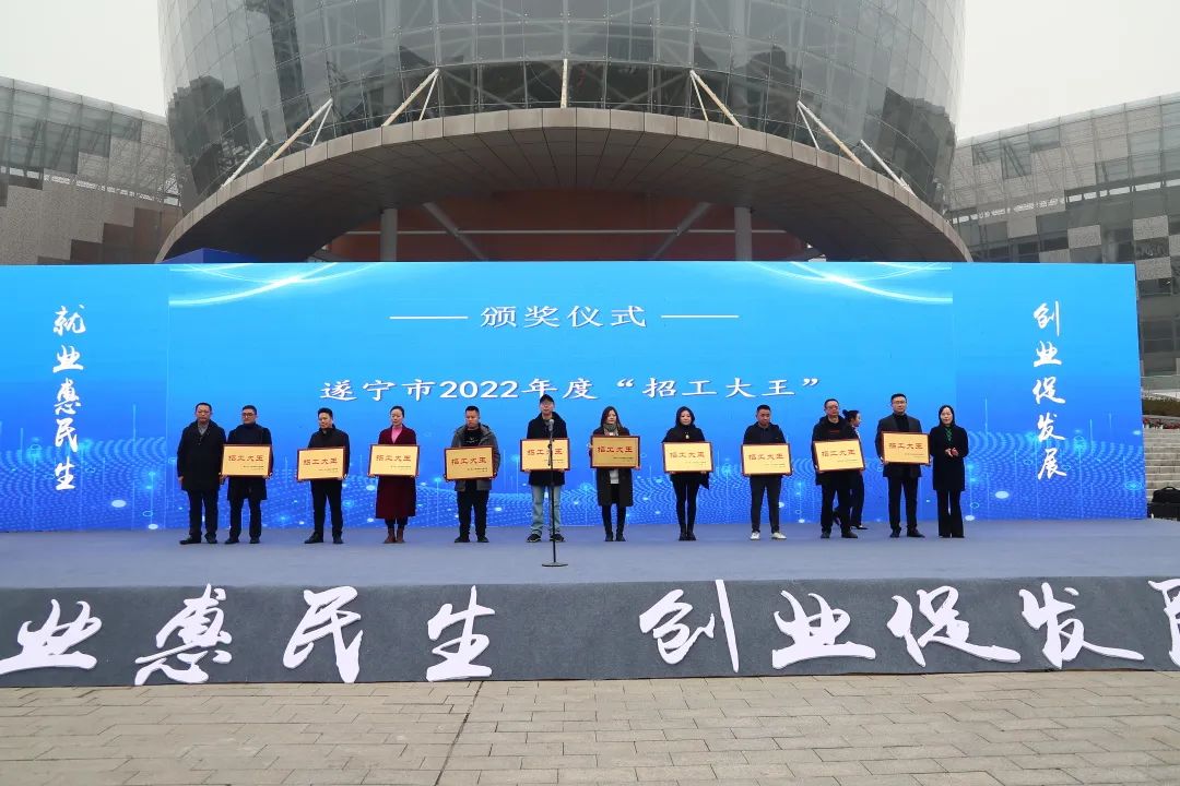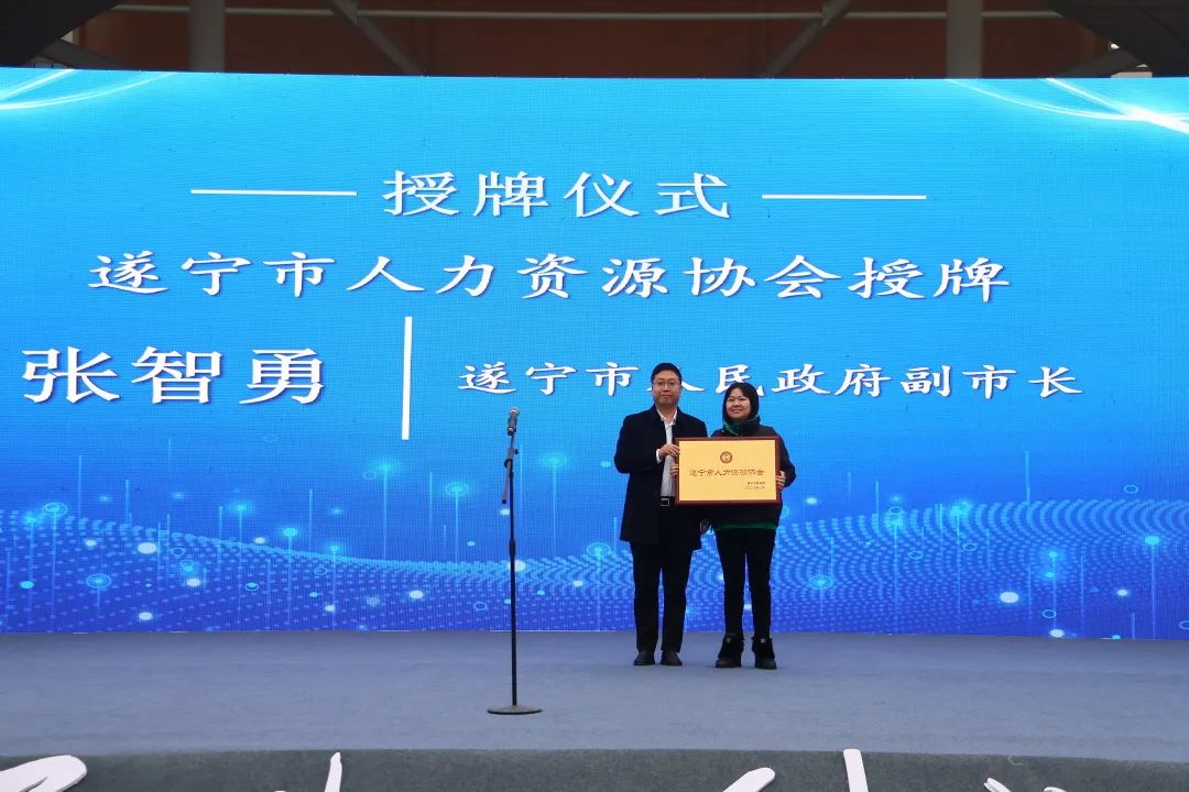 启动仪式上,市人力资源社会保障局党组书记蒋晟发布此次活动的相关情况,与会领导为获得2022年度市级“招工大王”“招工小哥”分别颁发奖牌和荣誉证书,张智勇为遂宁市人力资源协会成立授牌。