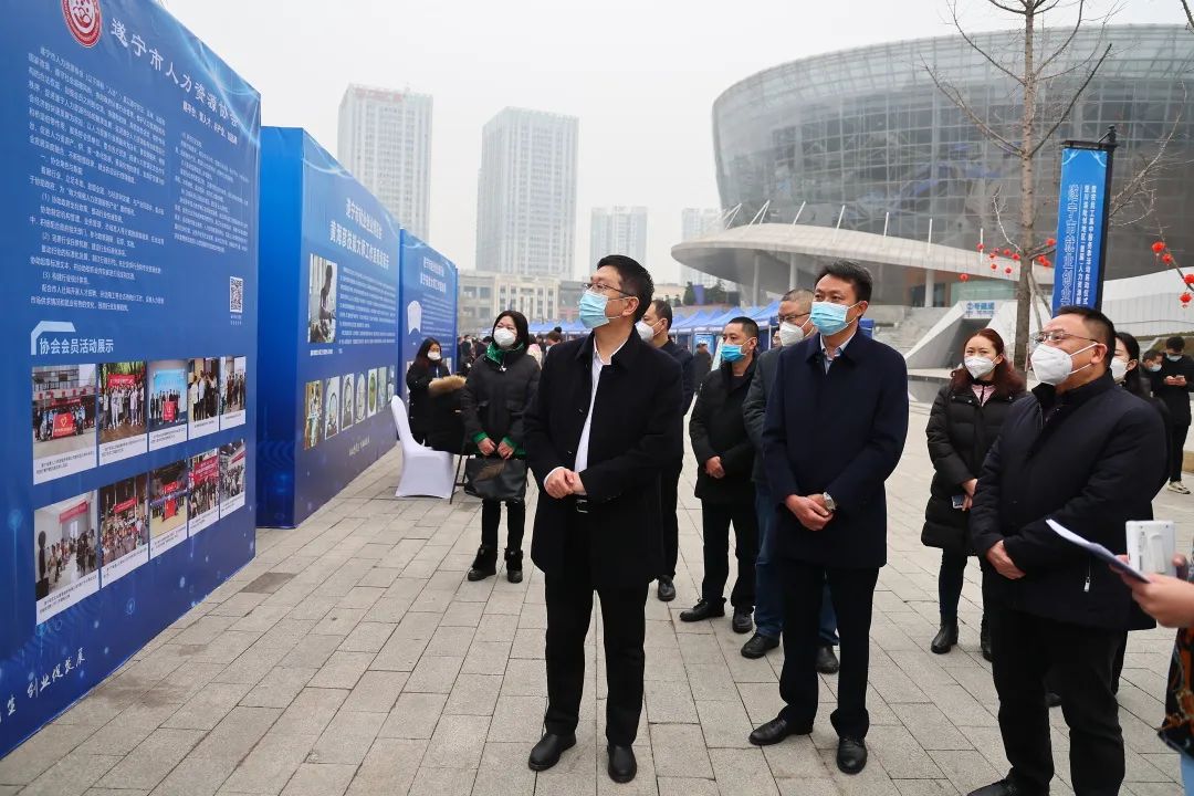在遂宁市就业创业成果展中,集中展示了三年来全市就业创业工作成效,现场展现了24个创业项目、8个就业帮扶载体、7个零工市场建设情况。在“春风送真情·援助暖民心”招聘会中,共邀请了全市100余家重点企业参与招聘,线上线下提供各类就业岗位5000余个,吸引了7000余名求职者入场招聘,在现场达成意向性协议1500余份;线上直播带岗吸引了2万余人次在线观看,在线投递简历2000余份。在遂潼川渝毗邻地区创业项目推荐会中,遂潼两地推荐8个优秀创业项目进行了路演,遂宁农商银行和遂宁邮储银行为优质项目进行了现场授信,吸引了200余名创业人员参与。在川渝毗邻地区(首届)人力资源服务产业交流会上,遂宁、铜梁、资阳、潼南、广安、合川、内江、荣昌等8地人社部门签订了战略合作协议,重庆市数字经济人力资源服务产业园、重庆三峡人力资源服务产业园、重庆市荣昌区人力资源服务产业园、广安市岳池输变电人力资源服务产业园、重庆大足人力资源服务产业园、川渝毗邻地区人力资源服务产业园(遂宁)6地签订了人力资源服务产业园协同发展战略合作框架协议。