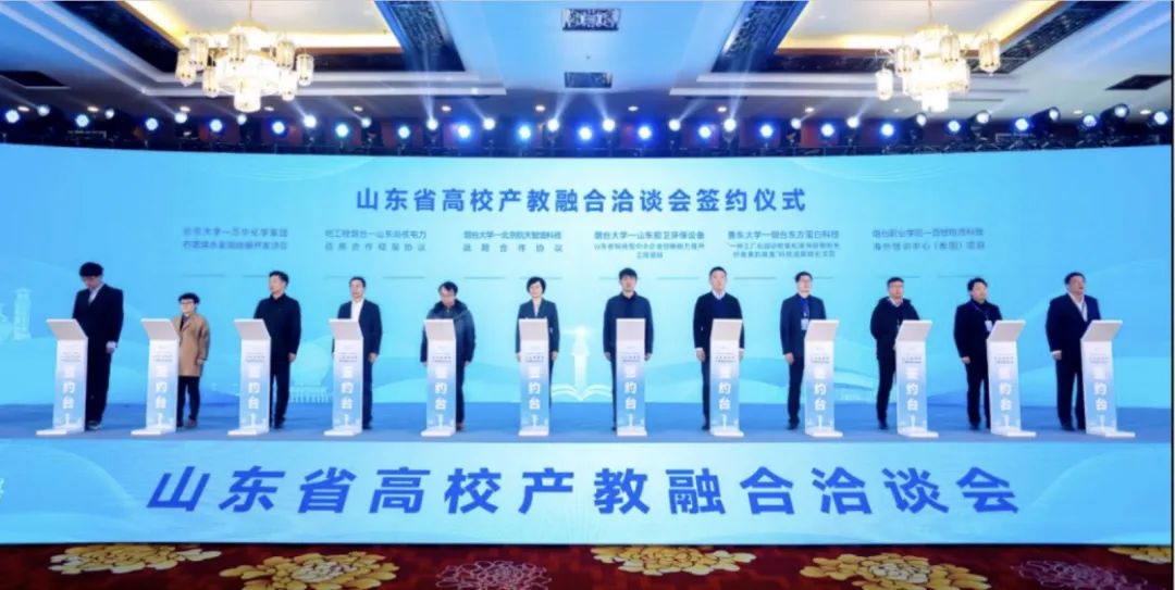 开幕式上举行了合作项目签约、揭牌和行业产教融合共同体启动等活动。产教融合研究分会理事单位烟台大学与北京航天智造科技发展有限公司签署战略合作协议,烟台大学与山东前卫环保设备有限公司为山东省科技型中小企业创新能力提升工程项目揭牌。在空天海智能装备产教融合研讨会上,烟台大学与航天云网科技发展有限责任公司为共建空天海智能装备产教联合体揭牌。