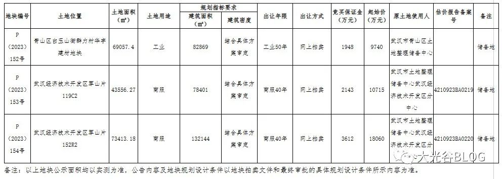 12月26日,从武汉土地交易市场获悉。武汉市拍卖出让国有建设用地使用权公告武告字(2023年)31号发布。武汉市自然资源和规划局决定以拍卖方式出让3宗地块的国有建设用地使用权。P(2023)152号地块网上拍卖出让时间为2024年1月16日9时30分;P(2023)153、154号地块网上拍卖出让时间为2024年1月24日9时30分。