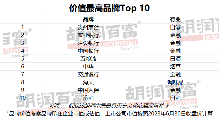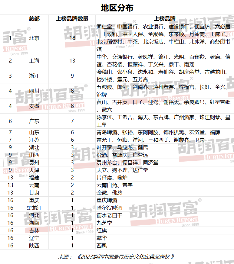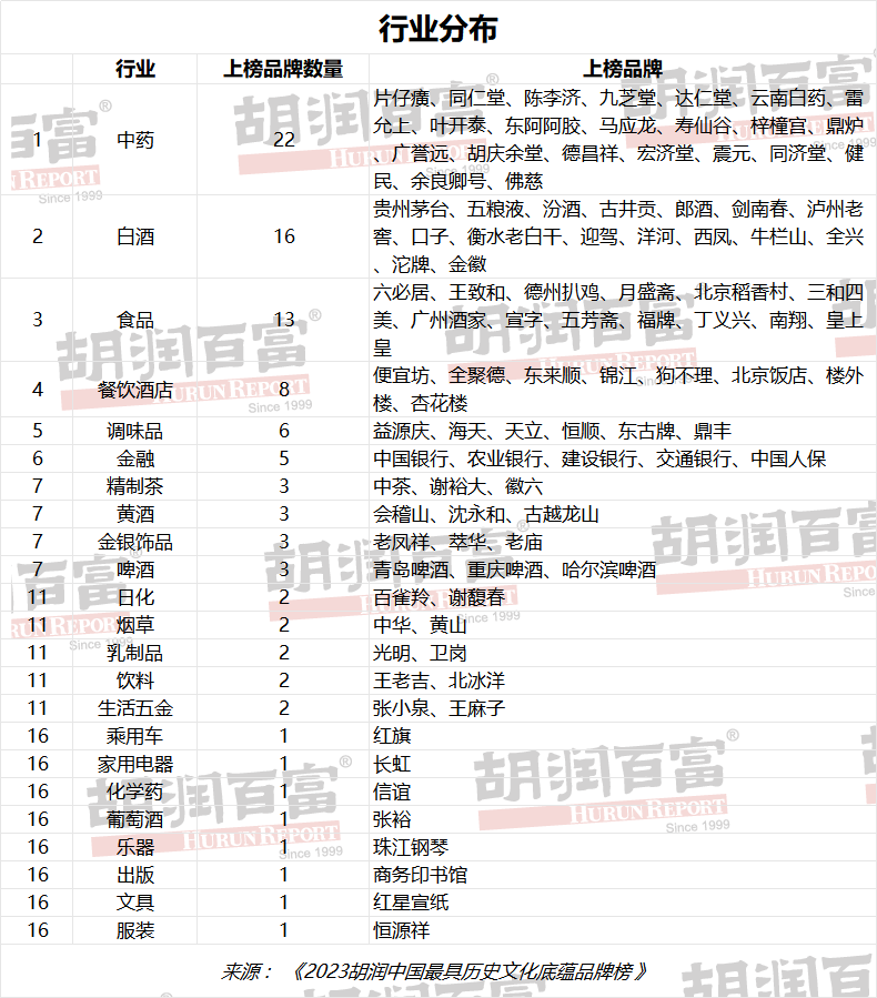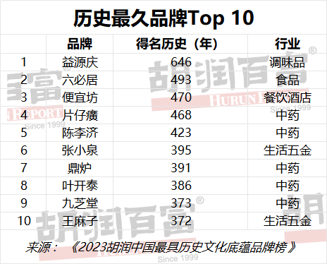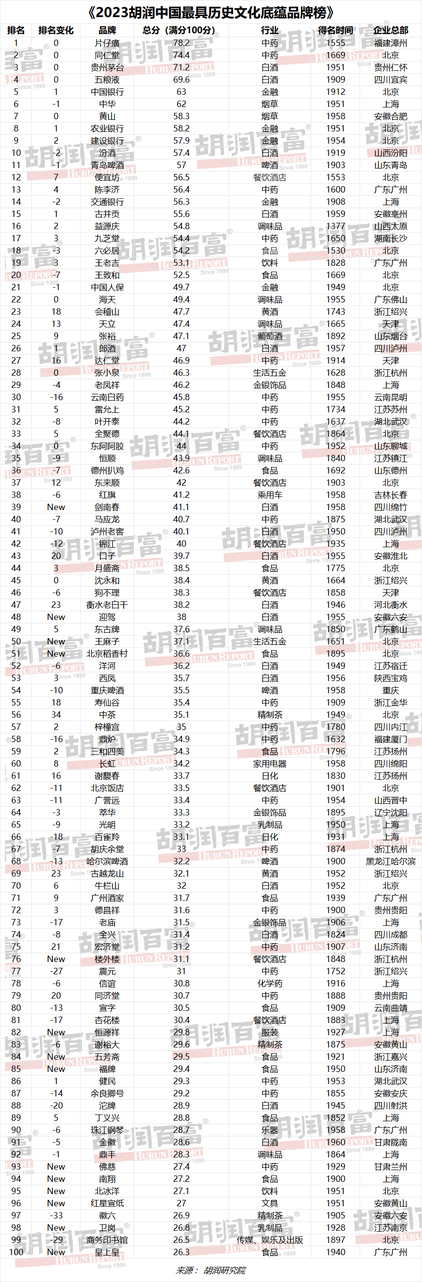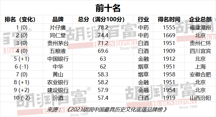 《2023胡润中国最具历史文化底蕴品牌榜》