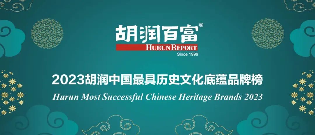 (2023年12月22日,上海)提供有质量的榜单与调研的胡润研究院今日发布《2023胡润中国最具历史文化底蕴品牌榜》(Hurun Most Successful Chinese Heritage Brands 2023),100个中国内地最成功的60岁以上品牌上榜。这是胡润研究院连续第四年发布该榜单。