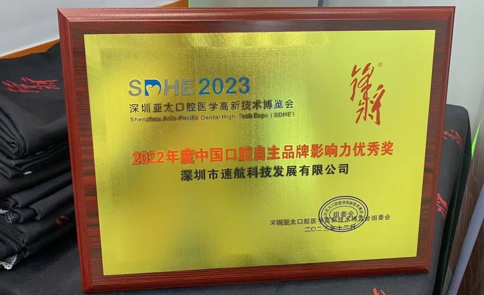 速航科技沉淀实力,打造出具有市场认可的品牌名片,荣获组委会颁发“2022年度中国口腔自主品牌影响力优秀奖”。
