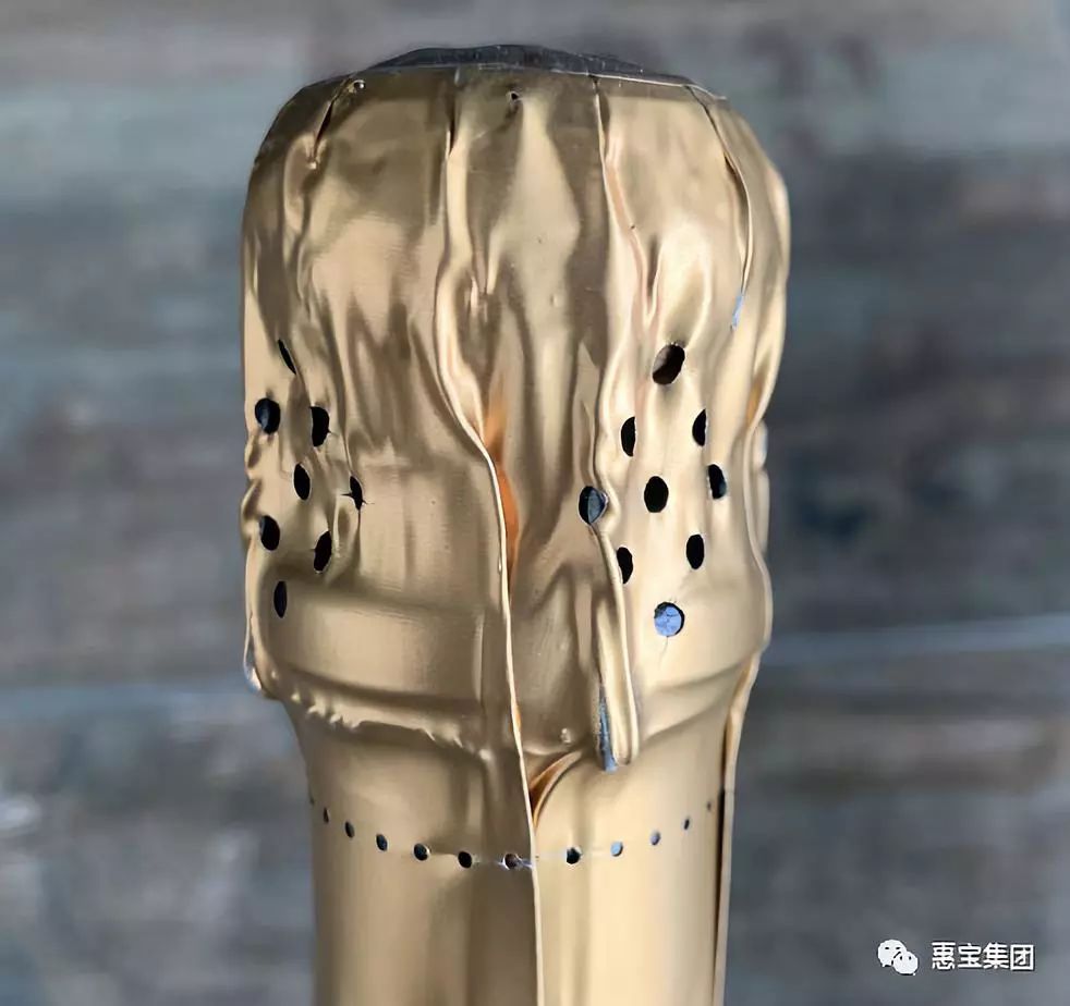 这些小孔可作套帽时排气用。在机械套帽的过程中,如果没有小孔排气,瓶帽和瓶口之间会有空气形成气垫,使得酒帽下落缓慢,影响机械流水线的生产的速度,而且在滚帽(锡箔帽)和加热(热塑帽)的时候,残余空气会被封闭在酒帽当中,影响封帽外观。