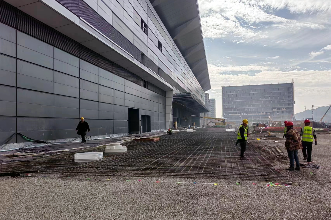 室外景观、市政工程:杭州大会展中心室外展馆之间的市政管线敷设、预埋、安装已基本完成,相关市政配套功能也在积极协调进场施工。室外景观面层铺装工程样板已按计划如期进场施工,力争在保证进度的前提下,达到品质与观感的双丰收。