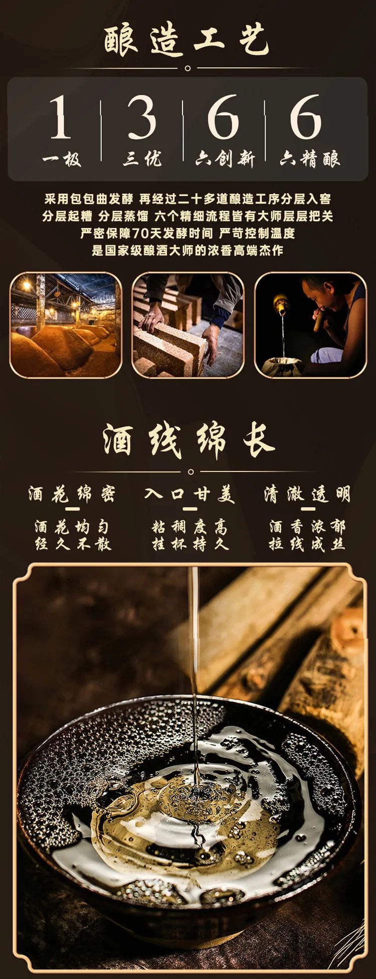 传统古法、优级品质,入口柔软绵润,口感干净爽口,回味悠长。无论是搭配美食还是单独品饮,都能够带给您与众不同的味觉体验。具有酒丝成线、酒花饱满、挂杯明显等特征,酒液清澈透明,酒味醇厚甘美,柔和净爽,诸味谐调,回味悠长、空杯留香的独特风格。