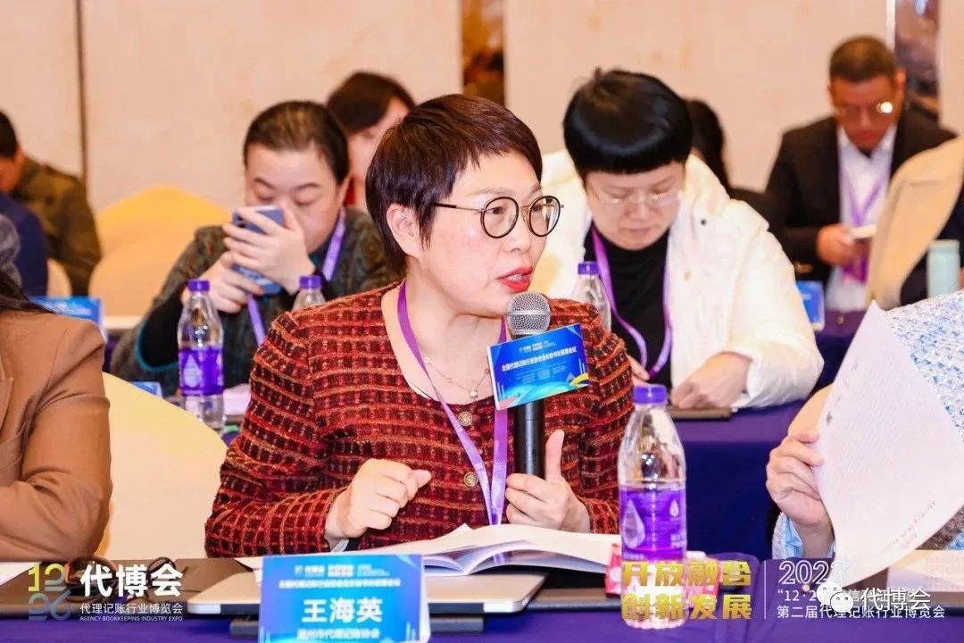 会议特设置交流讨论环节。湖北省代理记账行业协会会长徐新胜、广东省代理记账行业协会会长邱进、江西玉山财政局会计股股长李文剑、河南省财务服务行业协会秘书长韩宝、泉州市代理记账行业协会会长徐本玉、温州市代理记账协会会长王海英、包头市代理记账协会秘书长孙瑞就行业发展、政府支持、协会管理等方面各抒己见。