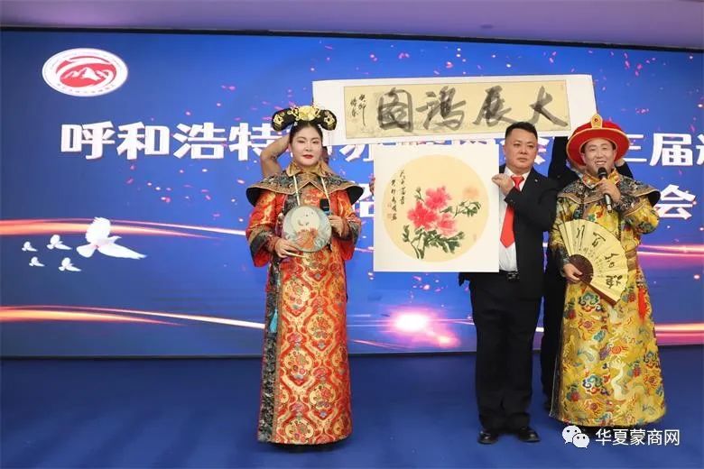 会上,内蒙古蒙商公益协会、内蒙古数字经济学会等部分商协会发来贺信,北京赤峰企业商会、内蒙古赤峰商会等国内部分省市赤峰商会负责人到场祝贺。在才艺展示环节,呼和浩特市赤峰商会秘书处选送的小合唱《我和我的祖国》,理事单位——内蒙古花好月圆文化发展有限公司选送的《江山如画》,以及知名女中音歌唱家索伦嘎演唱的《荞麦花开 》《爱上昭乌达》等才艺表演引起了与会嘉宾共鸣,唱出了在外赤峰籍游子的心声。