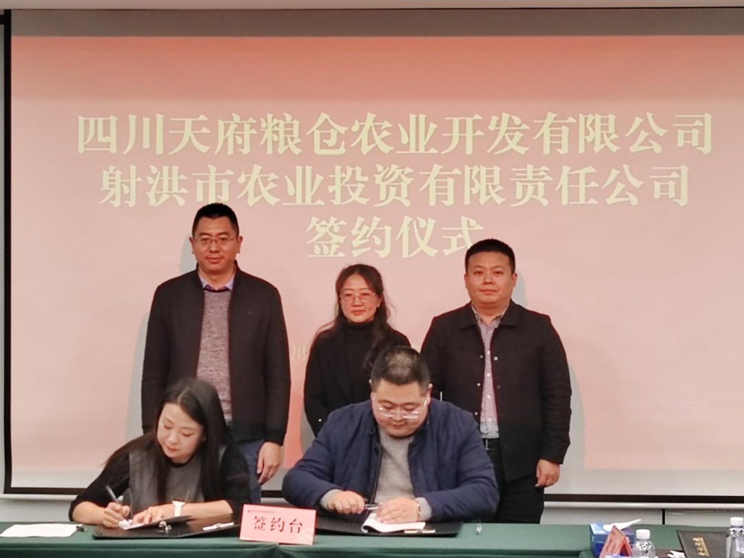 四川天府粮仓农业开发有限公司是省乡村发展集团有限公司下属的一家专业从事农业开发的国有全资企业,隶属于四川省商业投资集团。在遂宁市农业农村局、射洪市农业农村局的指导下,四川天府粮仓农业开发有限公司与市农投公司达成了一系列合作意向,双方于12月27日在成都举行了签约仪式。四川省乡村发展集团副总经理、四川天府粮仓农业开发有限公司董事长李雪剑,遂宁市农业农村局党组成员、副局长刘罡霏,射洪市农业农村局党组书记、局长余宁出席签约仪式。