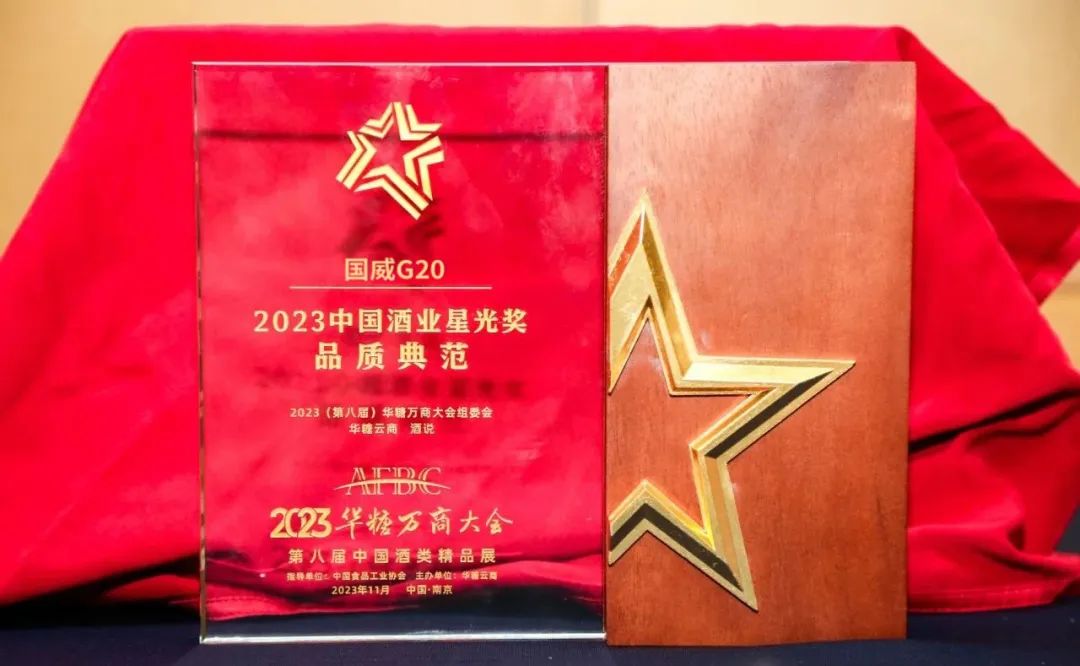 11月28日,在“新名酒品牌价值论坛暨2023中国酒业星光奖颁奖盛典”上,国威G20以高品质好口碑,斩获“2023中国酒业星光奖·品质典范”奖。