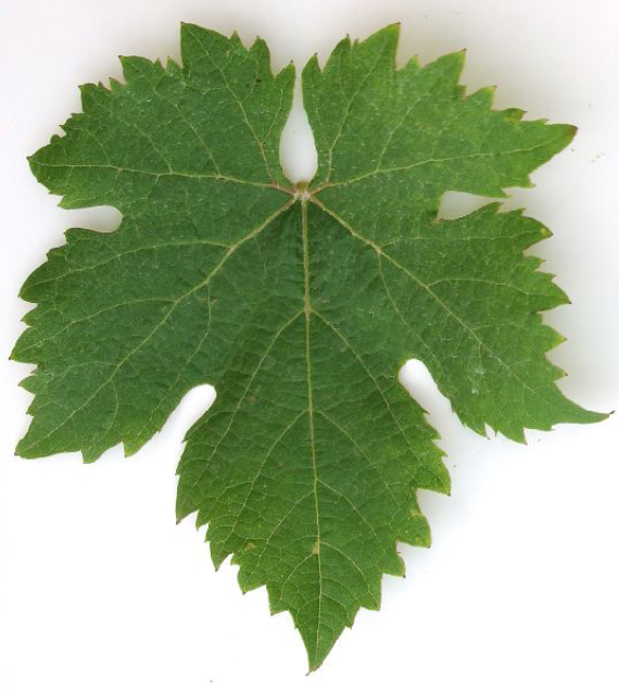 叶子:尺寸:大; 形状:五瓣,粗齿; 颜色:深绿色; 表面起伏度:中高; 叶柄窦:闭合,非常重叠; 如果藤蔓能够获得足够的养分,叶子的同化时间会很长。