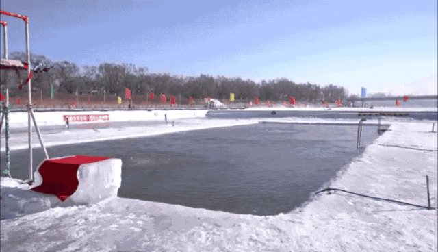 太阳岛雪博会的冬泳池是使用机器进行人为干预,不断向池内供氧与制热,使其水温始终保持在0℃,成为可以长期保留的室外冬泳池,不仅成为冬泳爱好者的“圣地”,也让游客能够在固定点位观赏冬泳表演。