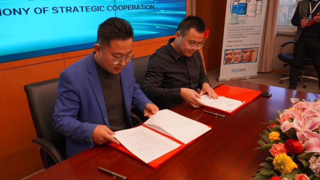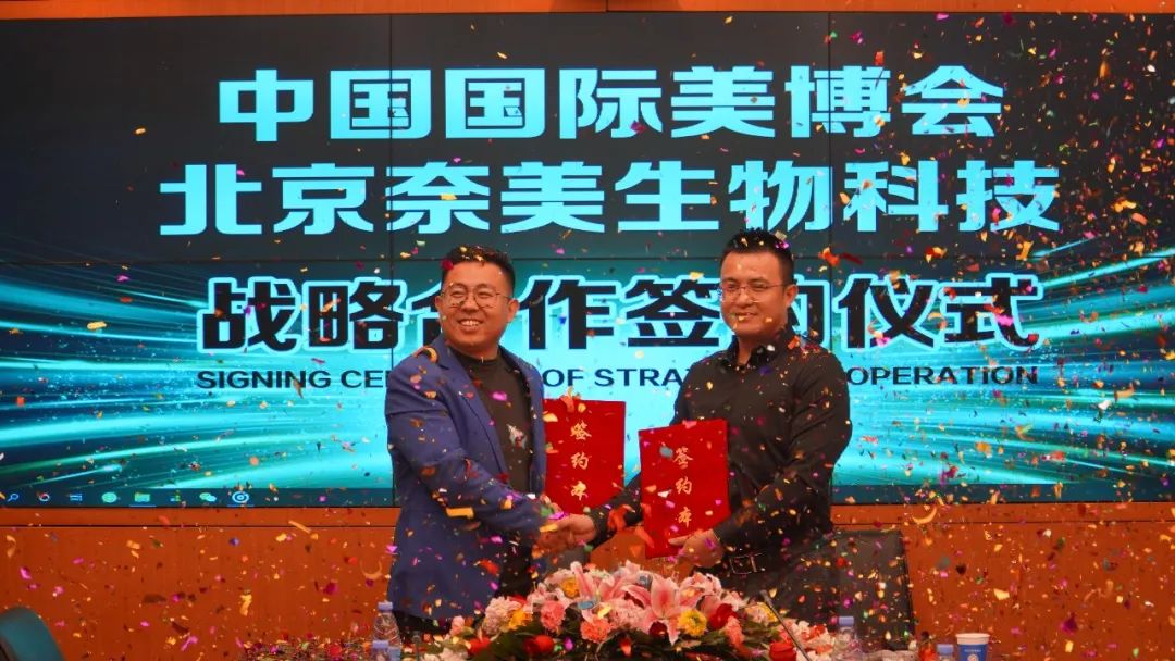 沙龙末尾,中国国际美博会医疗健康事业部副总经理刘立壮与北京奈美生物科技有限公司董事长肖伟共同签署年度战略合作协议。