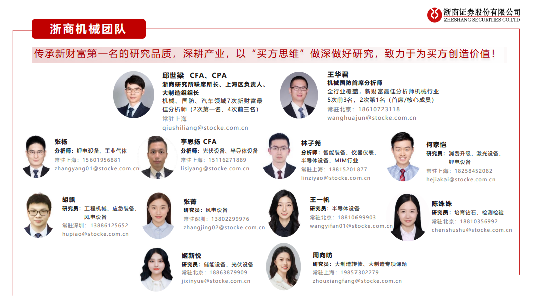 本公众号为浙商证券机械国防团队设立。本公众号不是浙商证券机械国防团队研究报告的发布平台,所载的资料均摘自浙商证券研究所已发布的研究报告或对报告的后续解读,内容仅供浙商证券研究所客户参考使用,其他任何读者在订阅本公众号前,请自行评估接收相关推送内容的适当性,使用本公众号内容应当寻求专业投资顾问的指导和解读,浙商证券不因任何订阅本公众号的行为而视其为浙商证券的客户。 本公众号所载的资料摘自浙商证券研究所已发布的研究报告的部分内容和观点,或对已经发布报告的后续解读。订阅者如因摘编、缺乏相关解读等原因引起理解上歧义的,应以报告发布当日的完整内容为准。请注意,本资料仅代表报告发布当日的判断,相关的研究观点可根据浙商证券后续发布的研究报告在不发出通知的情形下作出更改,本订阅号不承担更新推送信息或另行通知义务,后续更新信息请以浙商证券正式发布的研究报告为准。 本公众号所载的资料、工具、意见、信息及推测仅提供给客户作参考之用,不构成任何投资、法律、会计或税务的最终操作建议,浙商证券及相关研究团队不就本公众号推送的内容对最终操作建议做出任何担保。任何订阅人不应凭借本公众号推送信息进行具体操作,订阅人应自主作出投资决策并自行承担所有投资风险。在任何情况下,浙商证券及相关研究团队不对任何人因使用本公众号推送信息所引起的任何损失承担任何责任。市场有风险,投资需谨慎。 浙商证券及相关内容提供方保留对本公众号所载内容的一切法律权利,未经书面授权,任何人或机构不得以任何方式修改、转载或者复制本公众号推送信息。若征得本公司同意进行引用、转发的,需在允许的范围内使用,并注明出处为“浙商证券研究所”,且不得对内容进行任何有悖原意的引用、删节和修改。 |