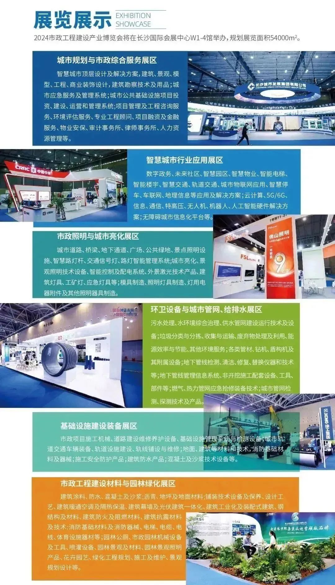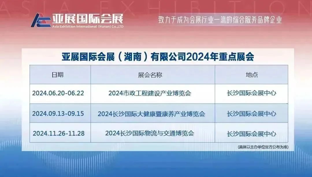 2024市政工程建设产业博览会拟于2024年6月20日-22日(具体以主办单位官方公布为准)在长沙国际会展中心举办,规划展览面积5.4万㎡,设置城市规划与市政综合服务,智慧城市行业应用,市政照明与城市亮化,环卫设备与城市管网、给排水,基础设施建设装备,市政工程建设材料与园林绿化6大主题展区,集中展示新科技、新装备、新技术、新成果,覆盖市政建设全产业链,参展企业500+家,同期举办20+场主题论坛、研讨会议、新产品新技术发布等配套活动,预计专业观众50000+人次,以高规格的接待组织,高水准的行业话题,高层次的思想碰撞,助力中国市政工程建设高质量发展。