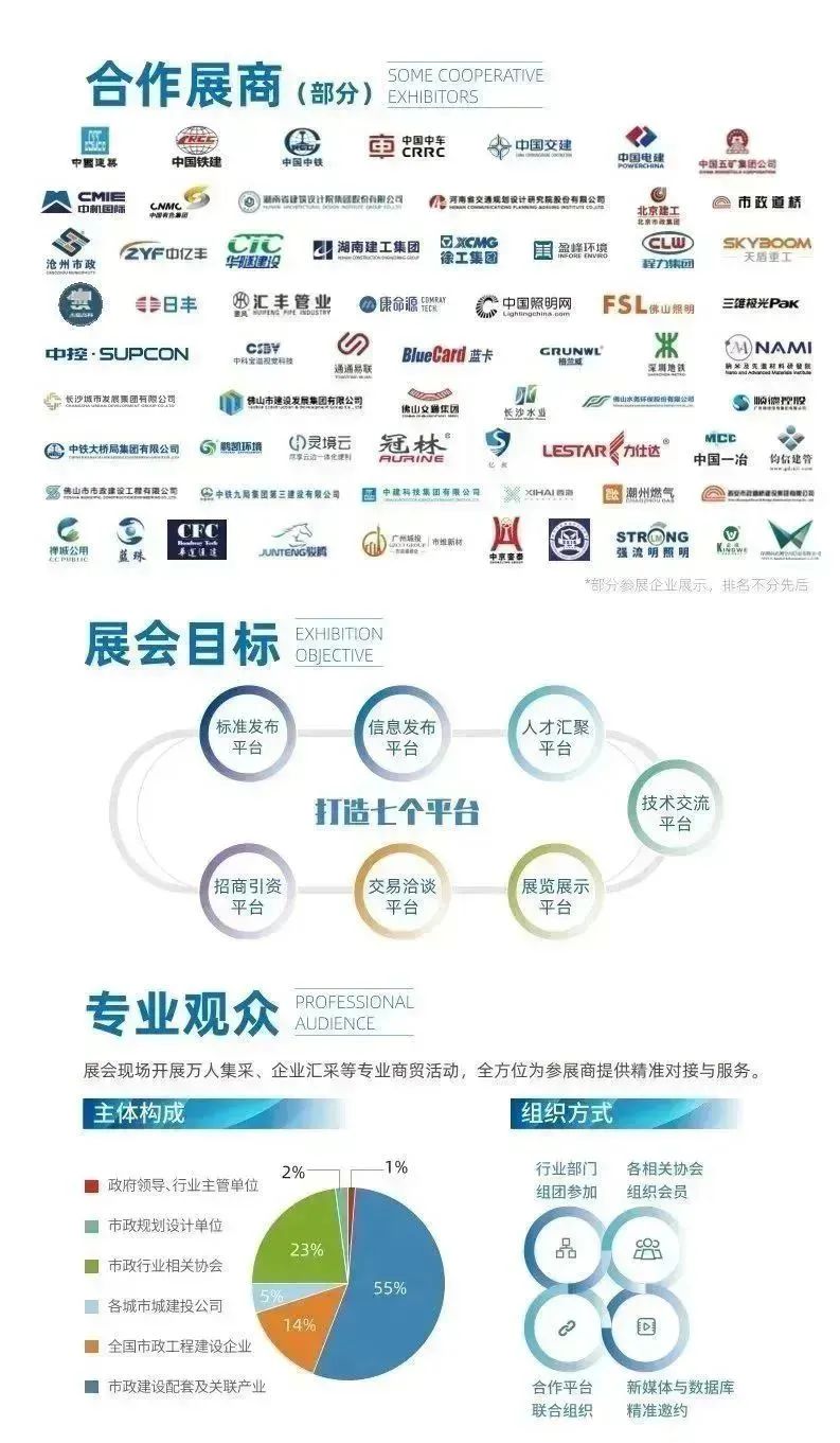 市政工程建设产业博览会(以下简称“博览会”)是践行国家新基建战略、引领行业行稳致远、深度拓展市政建设全产业链的大型专业性展会,分别于2022年在湖南长沙、2023年在广东佛山,连续成功举办两届,以举办规格高、产业覆盖广、行业影响大、参与企业多等特质,成为全国市政建设行业的风向标。