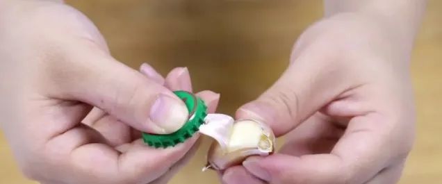 3.取一个干净的“啤酒盖”,将其压在大蒜上