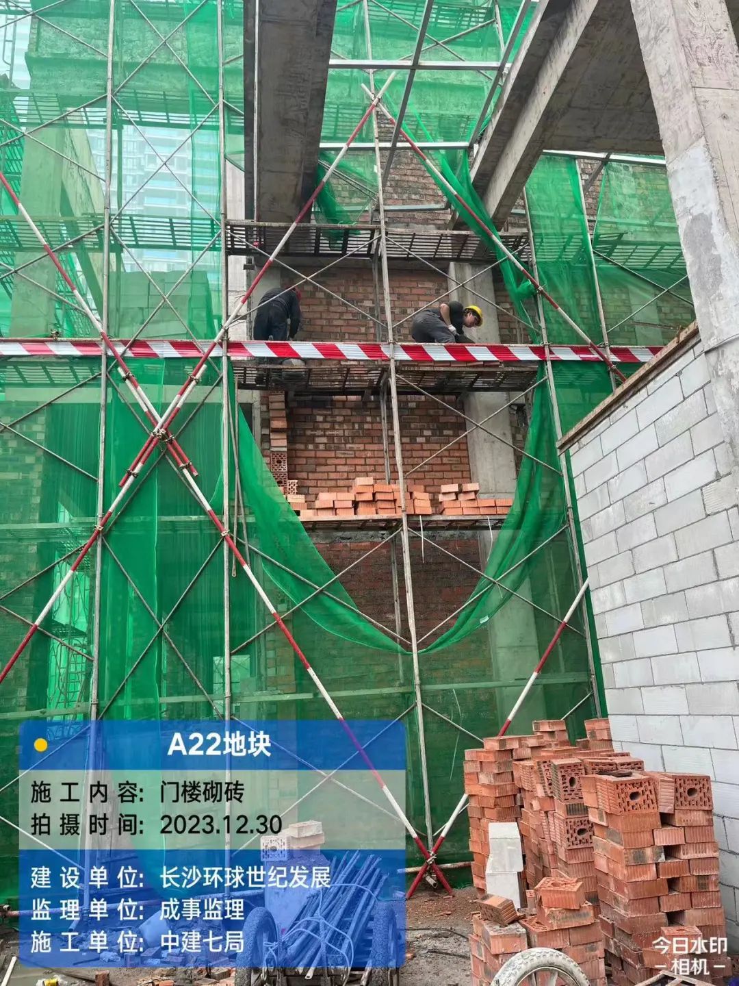 1#、2#、3#栋砌筑、抹灰、保温施工;阳台收口,门楼砌筑。