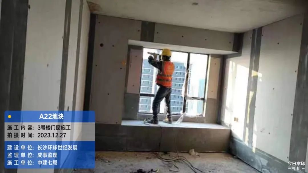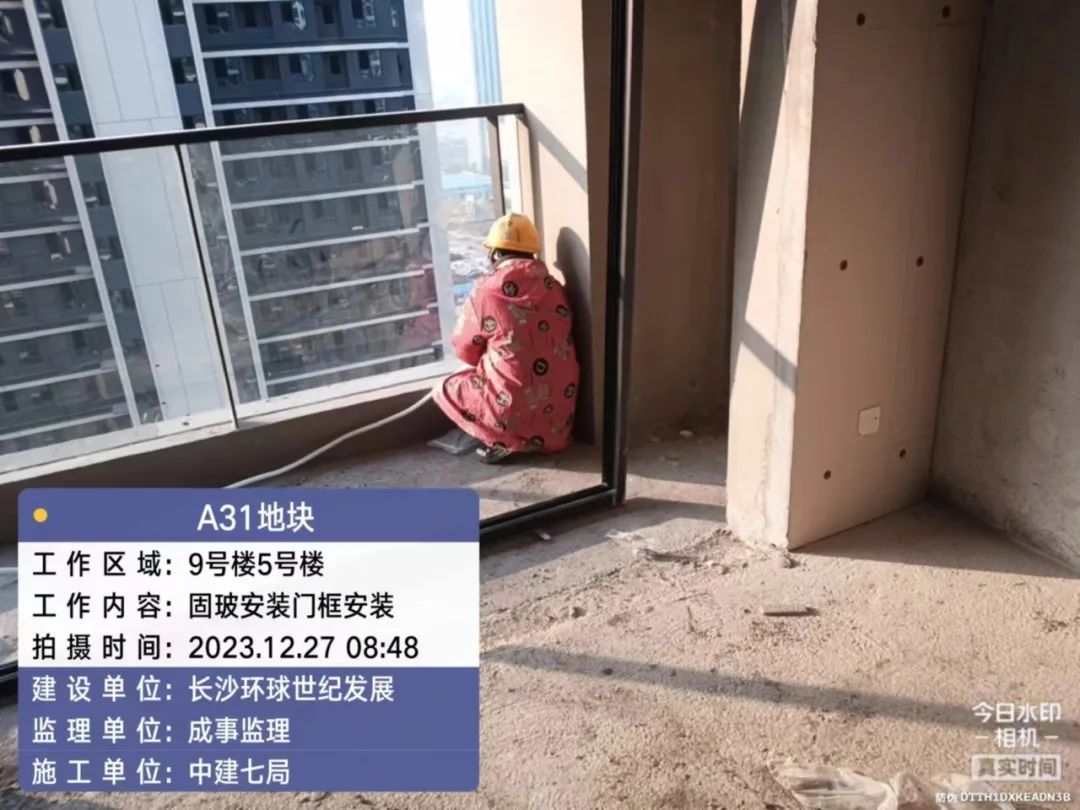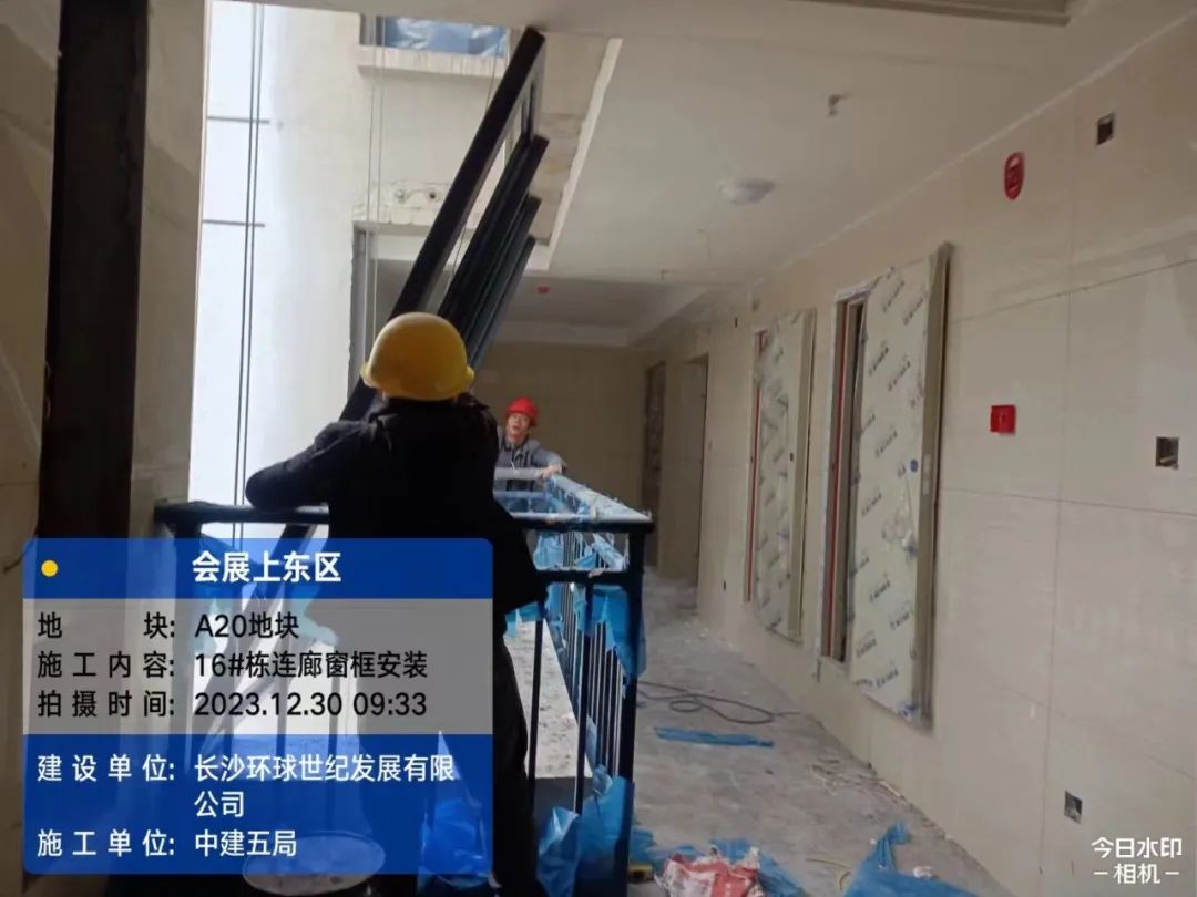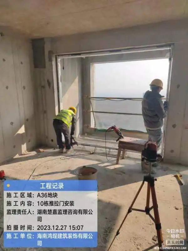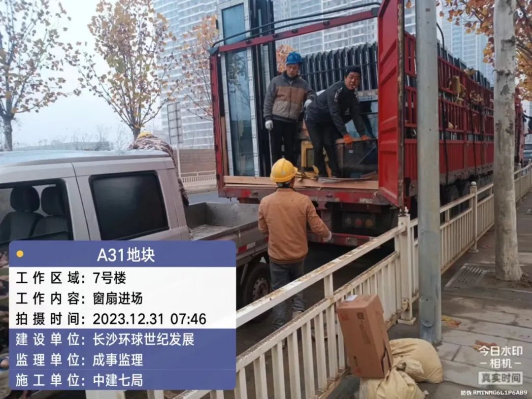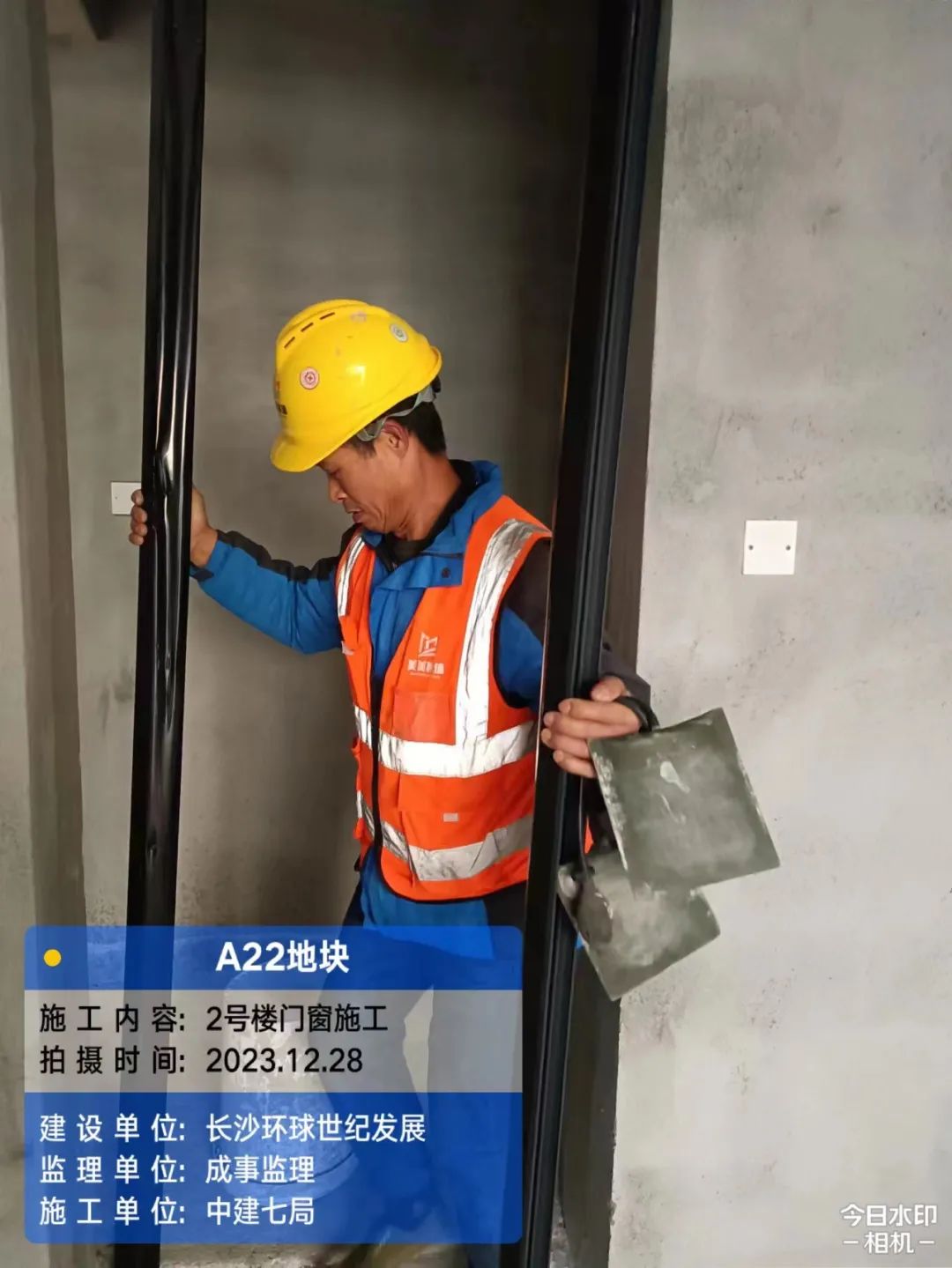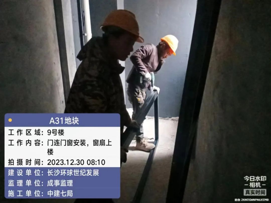 5#、7#、9#栋固定玻璃及推拉门上运材料,安装固定玻璃;防火窗、防火门扇安装。