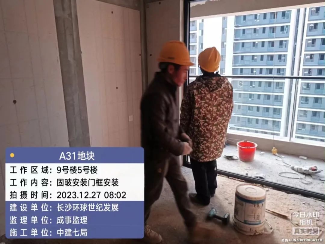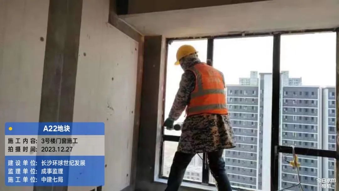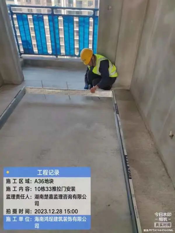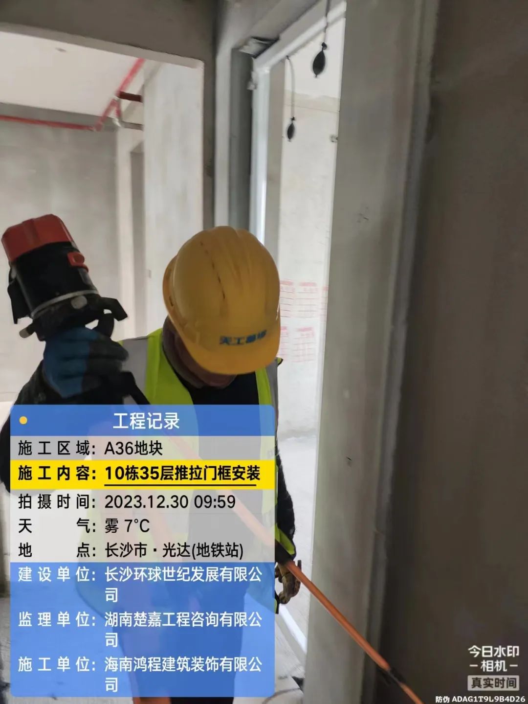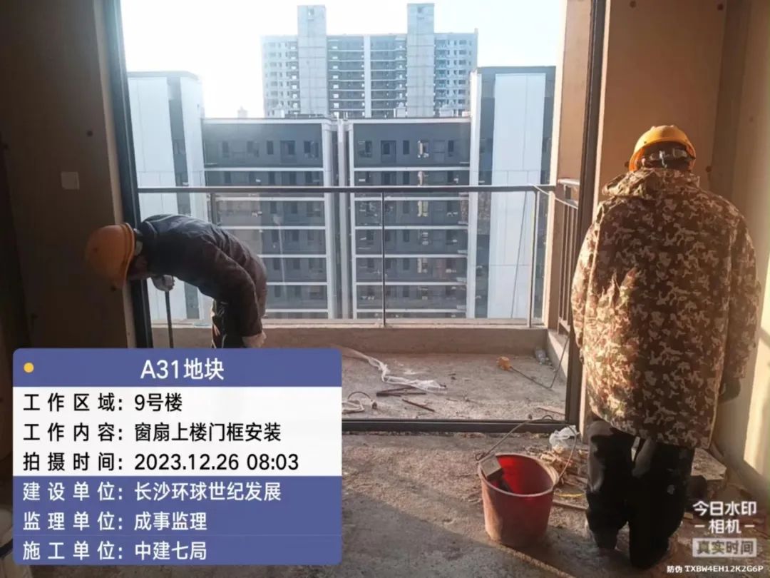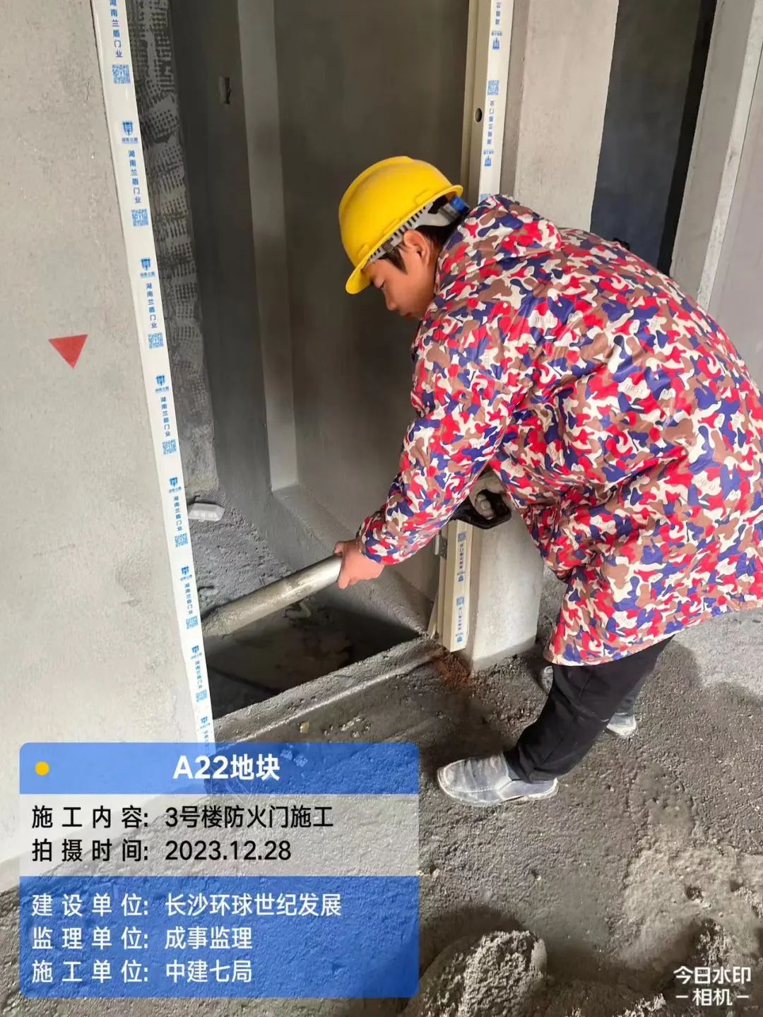 5#、7#、9#栋固定玻璃及推拉门上运材料,安装固定玻璃;防火窗、防火门扇安装。