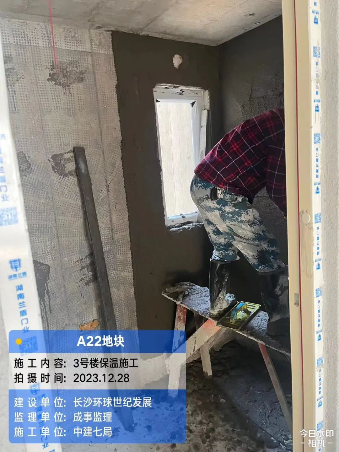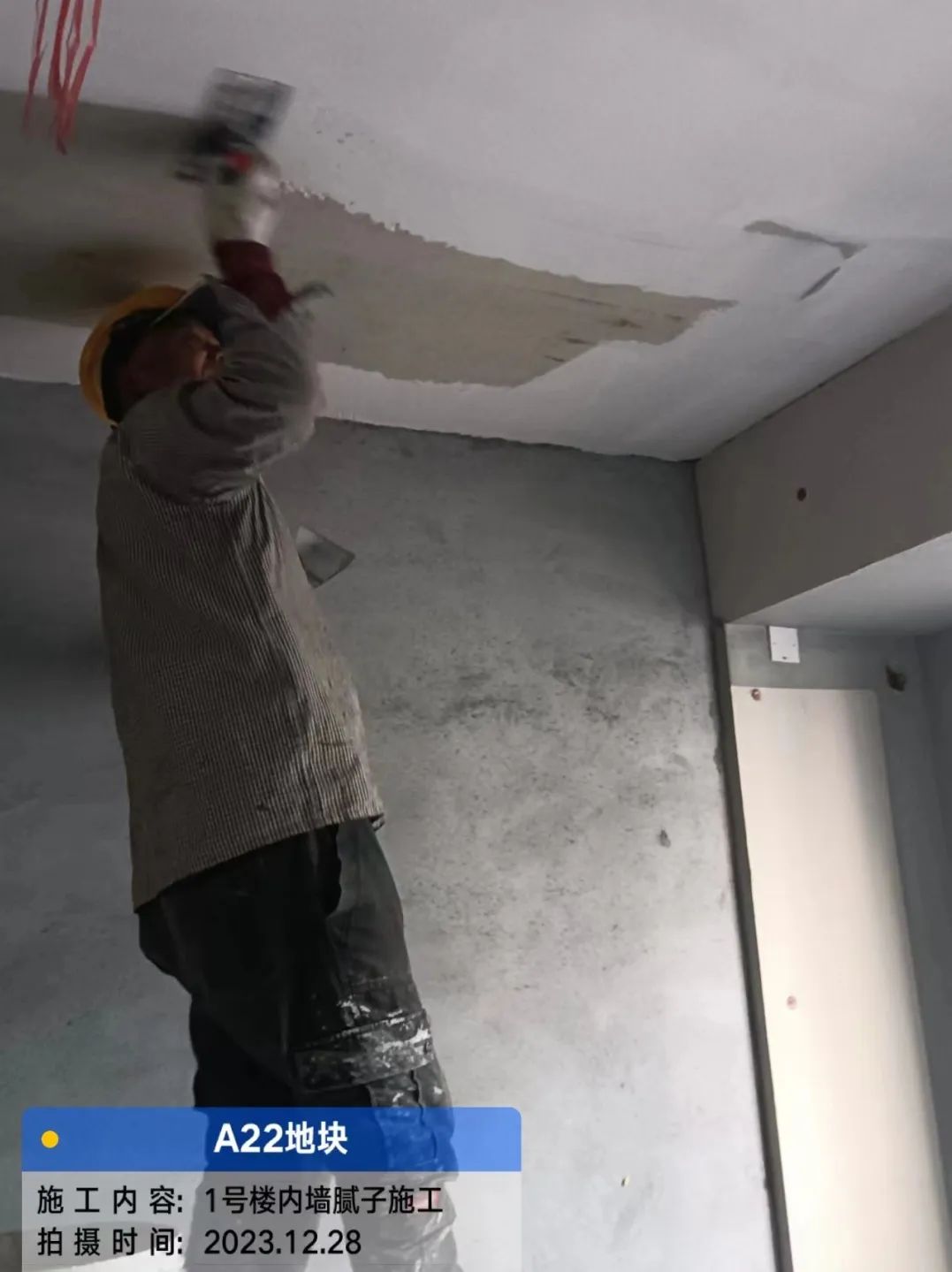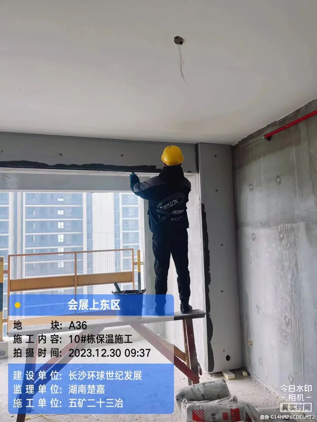 10#栋抗裂砂浆、楼梯间腻子,墙地面保温施工。