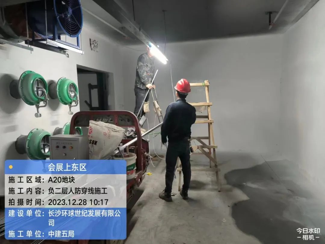 地下室抹灰、砌筑、消防施工;地下室顶板防水施工。