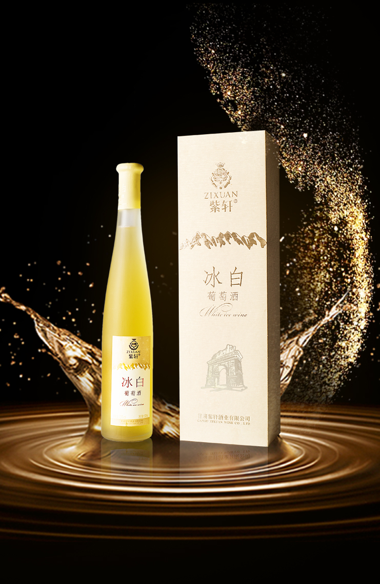 在甘肃省嘉峪关地区的戈壁沙质土壤上生长的威代尔(Vidal)葡萄,因该地区的日照时间长、昼夜温差大、降水量小等极度优越的自然气候条件,其成熟期的自然含糖量可达30度以上,同时,在较早到达的第一场雪的冷冻下,葡萄在植株上自然结冰,经人工采摘,选择状态良好的葡萄进行柔性取汁后精心酿造。在同样的产区,并不是所有的年份都能有这样的收获,所以更显得冰白葡萄酒的珍贵。紫轩万亩葡萄庄园使用引自无任何污染的祁连山冰川雪水,采用以色列滴灌技术浇灌,自给的葡萄基地,不仅保证了葡萄的完全成熟,尤其满足了酿造冰白葡萄酒对原料的苛刻要求。