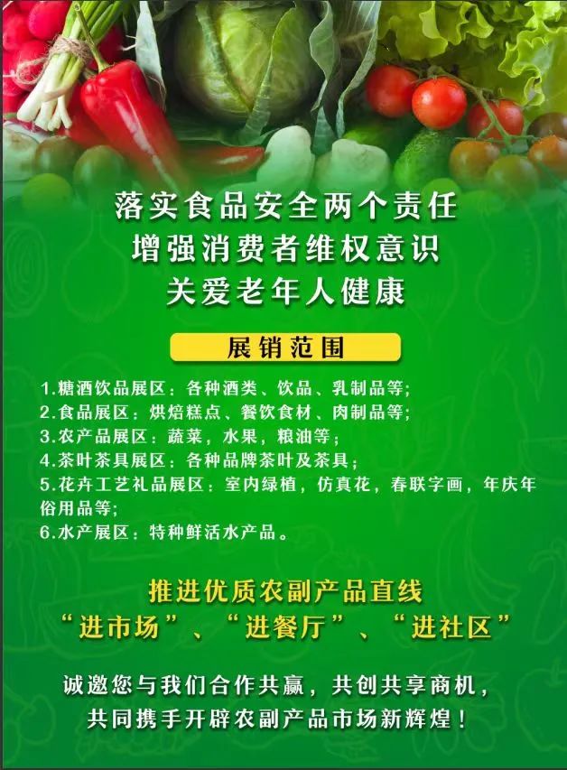为了进一步全面促进消费、着力扩大内需、推动高质量发展,陕西省市场监督管理局、西安市市场监督管理局指导、西安市消费者协会、西安市农产品市场管理行业协会、西安市老龄健康协会联合多个农贸市场举办陕西首届西安名特优菜篮子展销会。