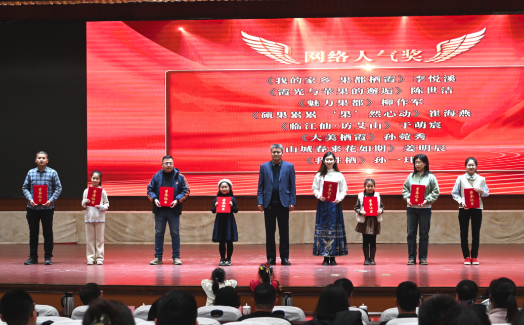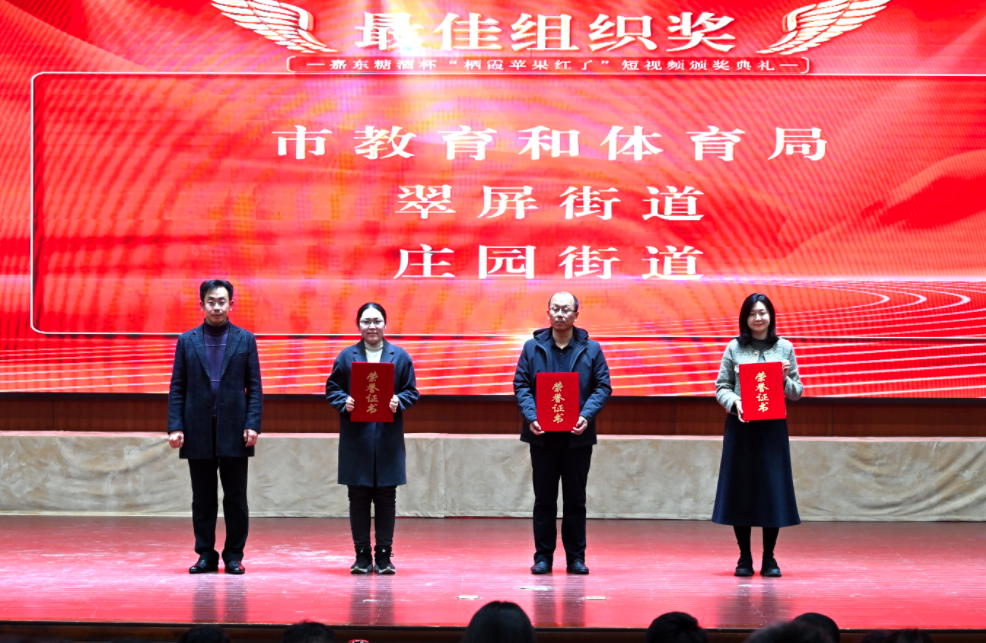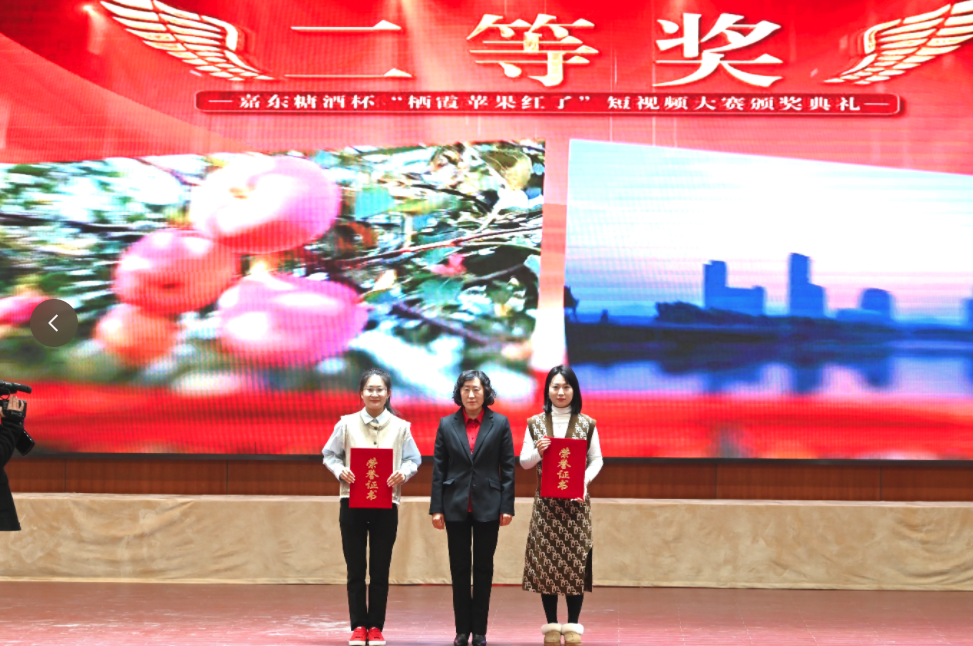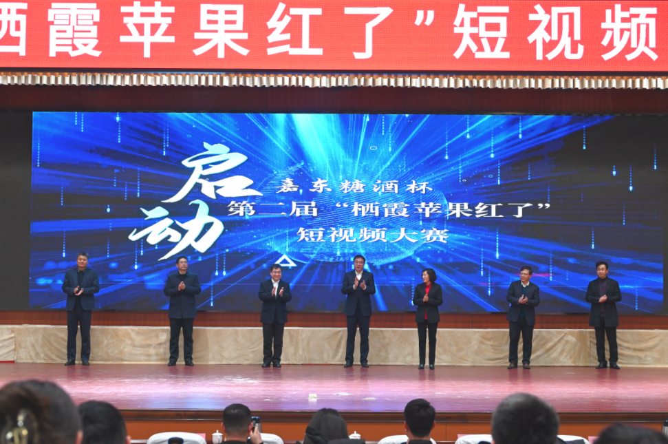 12月28日,由市委宣传部、市融媒体中心主办,栖霞嘉东糖酒有限公司冠名的“嘉东糖酒”杯“栖霞苹果红了”短视频大赛颁奖晚会在第一会议室举行。市领导张海涛、刘振华、沈兴海、市委宣传部相关负责人、市融媒体中心主要负责人及相关镇街部门分管负责人、媒体代表和企业负责人等出席活动。