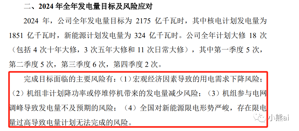 (1)用电量存在下行风险,新能源并网电价和电量可能继续下行,进而影响整个新能源产业链,这个风险是必须要注意的。