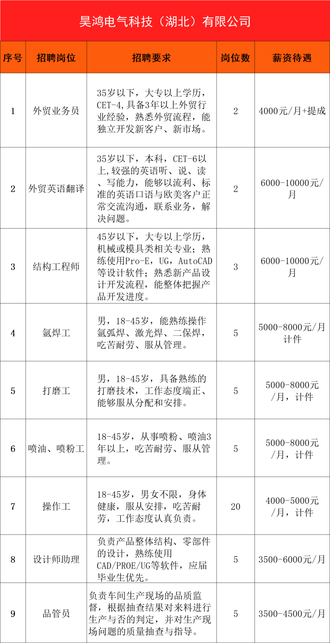 昊鸿电气科技(湖北)有限公司是黄冈麻城市政府重大招商引资项目,落户黄冈麻城市经济开发区。公司专注于户外烧烤炉、烤箱、披萨炉、高端燃气火炉等电气的设计、研发、生产和销售。产品主要出口至欧洲、北美、澳洲等地的多个国家和地区。