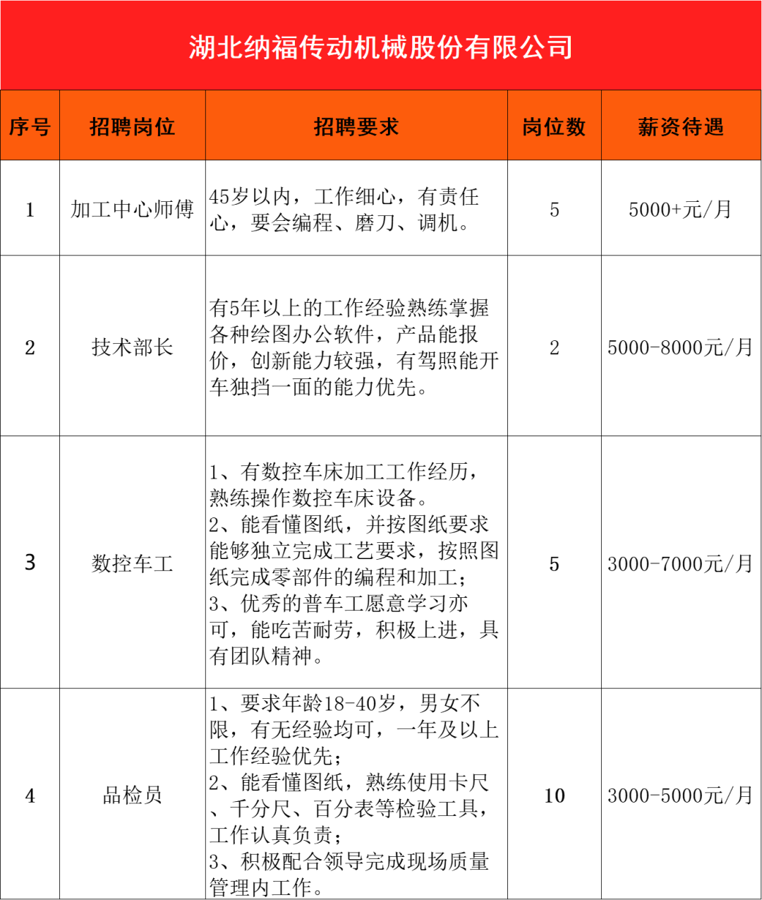 湖北纳福传动机械股份有限公司成立于2006年8 月,位于湖北省麻城市经济开发区。公司主要生产十字轴式万向联轴器,万向联轴器是联接两轴和轴及回转件,专业涵盖精密复杂模具的设计与制造、精密加工、热处理、焊接等,公司依托武汉工程大学、华中科技大学及中国重汽技术研发中心作支撑,具有较强的新产品开发能力,产品持续创新能力强。公司现有各类设备96台套,主要数埪生产设备36台套。
