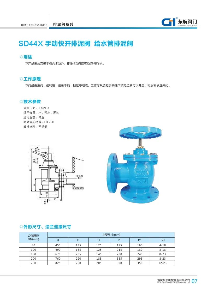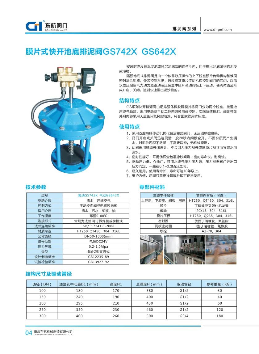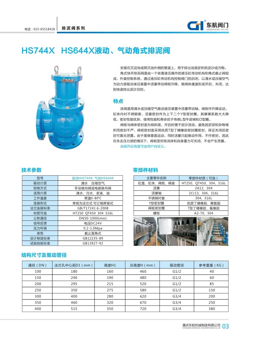 重庆东航阀门制造有限公司位于具有“重工之城”的重庆,是集设计研发,生产销售,安装服务一体的专 业化阀门企业。下辖东航、东掘两个品牌,主要产品有:排泥阀、排气阀、电磁阀、水力控制阀,闸阀等;现 有10多个系列,100多个品种。我们建立了完整的经销和售后服务体系,产品覆盖全国各地,广泛用于给排水, 建筑,化工,电力,冶金,造船等行业。我们产品以技术创新,质优价宜深得广大用户的信赖和好评。