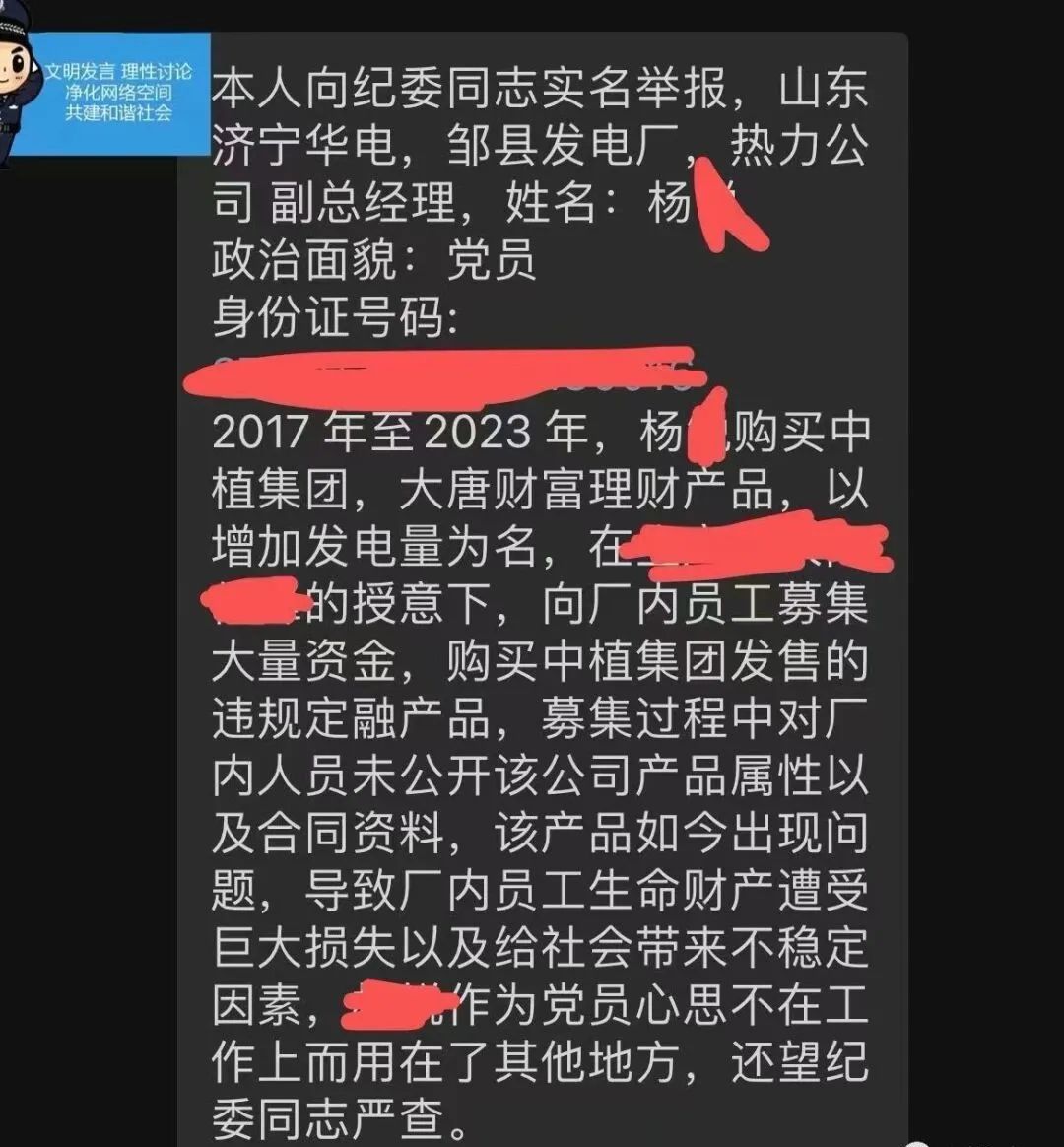五、网传山东几家电厂拖拉机户踩雷中植系,可能牵涉众多中小投资人