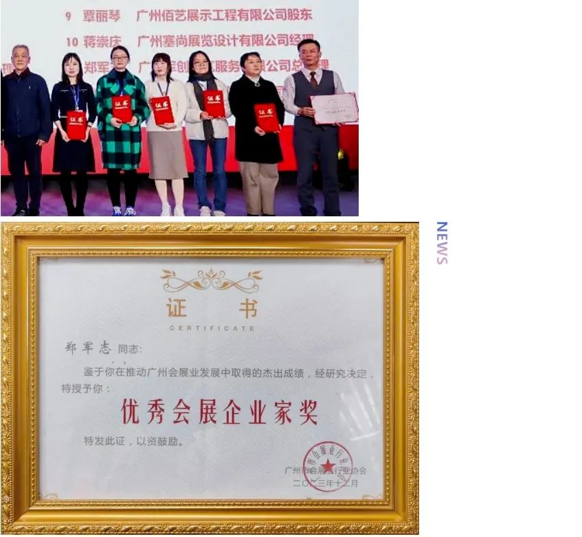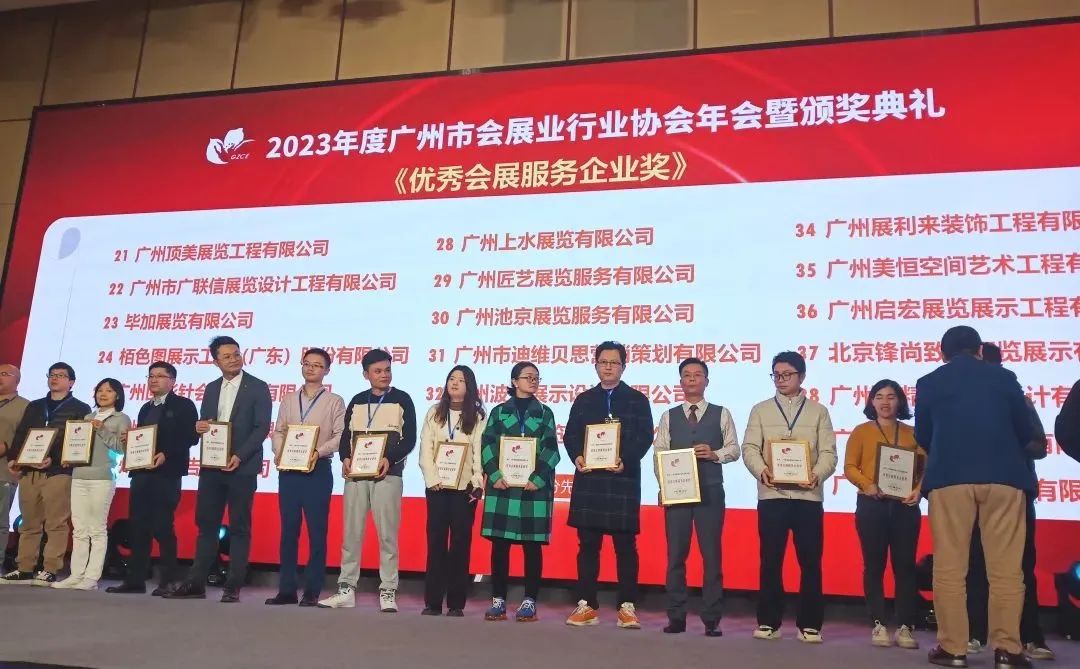 2023年12月21日,广州市会展业行业协会年会暨颁奖典礼在广州白云宾馆隆重举办。会议总结了2023年广州会展行业发展情况,表扬了先进单位和个人。广州军创展览服务有限公司受邀出席本次会议,并喜获多项荣誉。