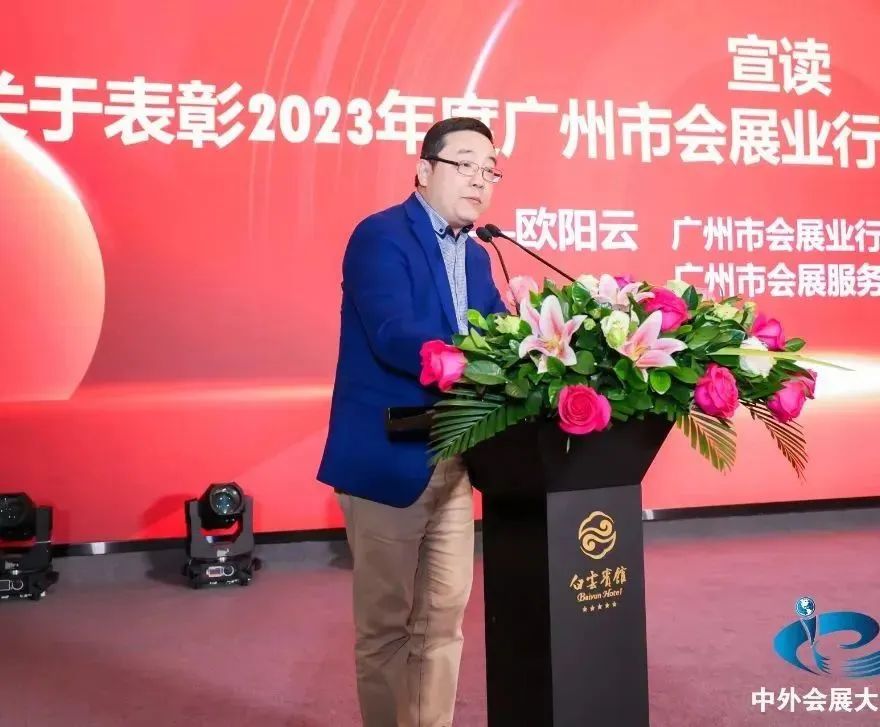 广州市会展业行业协会执行会长欧阳云宣读了“关于表彰2023年度广州市会展业行业先进单位和个人的通报”,对他们在过去一年中所取得的骄人成绩表示祝贺。
