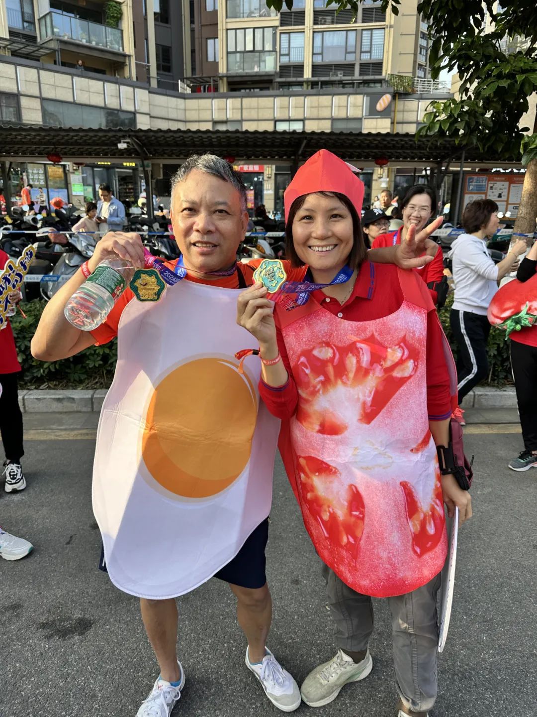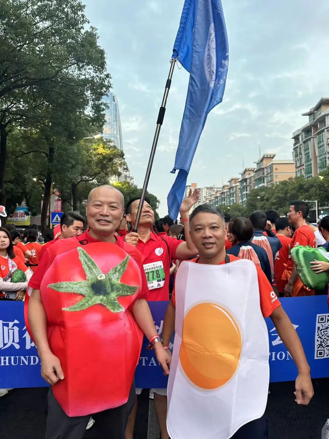 容桂餐协在这次的马拉松欢乐跑制作了多种多样的显眼包道具参与其中。食物衣服、食物抱枕、美食KT板等等来彰显世界美食之都顺德、中华美食名镇容桂。