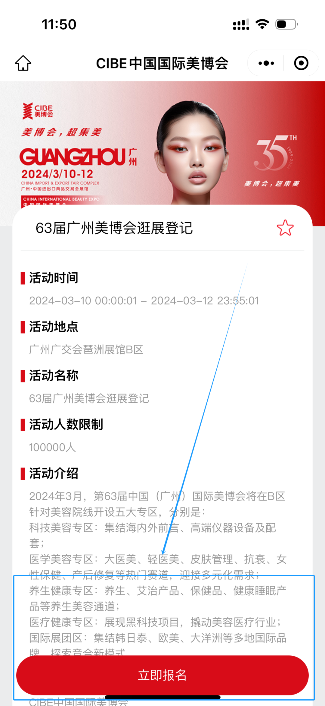 进入小程序报名界面,点击“立即报名”