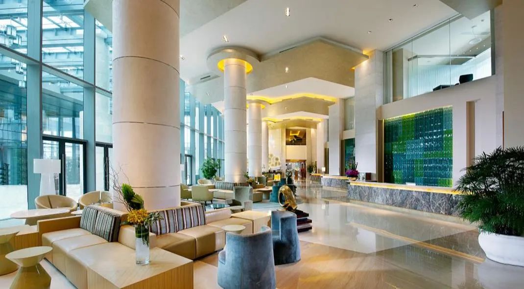 上海浦东绿地假日酒店选址于浦东新区康桥半岛国际社区,毗邻国际会展中心,康桥工业园区,张江高科技园区和上海迪士尼度假区,每日有免费穿梭巴士往返于酒店与上海迪士尼度假区。这里提供友好并富于创新的氛围让酒店的商务和旅游客人倍感舒适,笑由心生。酒店顶层全透明悬臂式室内天幕泳池,带您领略畅游在100米高空,如鸟儿般俯瞰地面车水马龙的惬意。上海浦东绿地假日酒店,一个可以做回自己的地方。上海浦东绿地假日酒店公共区域