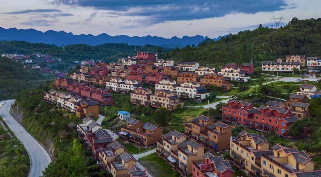 远观【歌娅思谷·千家瑶寨】千家瑶寨景点是南丹县易地扶贫搬迁和旅游开发项目最具特色、体量最大的安置区之一,前身是里湖王尚安置点,现已成立为朵努社区,位于歌娅思谷瑶王寨二级公路两旁,设有斗鸟寨、铜鼓寨、牛角寨、陀螺寨、粘膏寨共五个白裤瑶文化主题村寨。