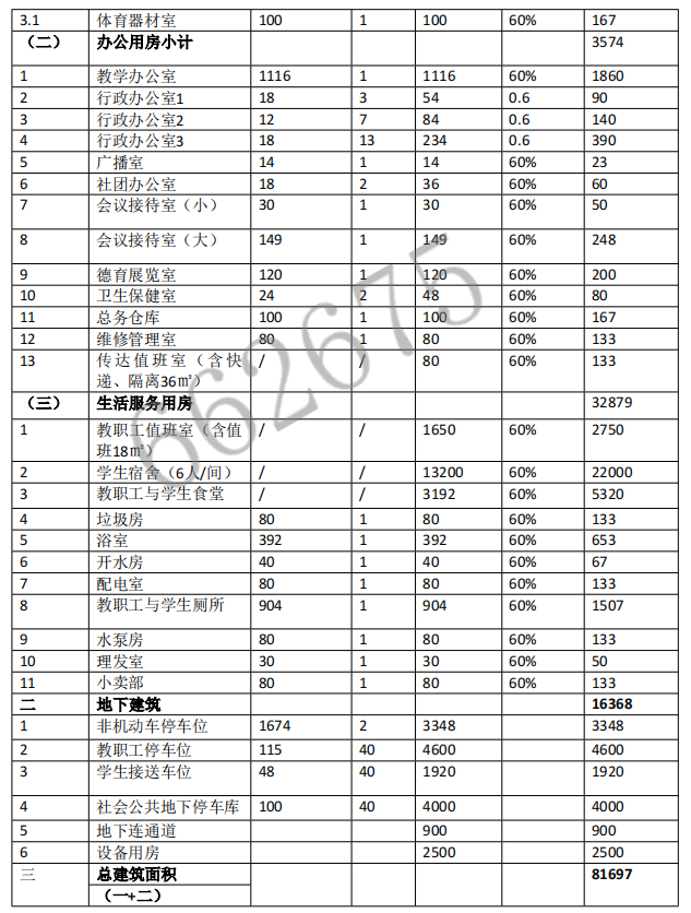 3.宿舍一层设置架空层,整体学校考虑1500㎡架空层(不计建筑面积),学生宿舍