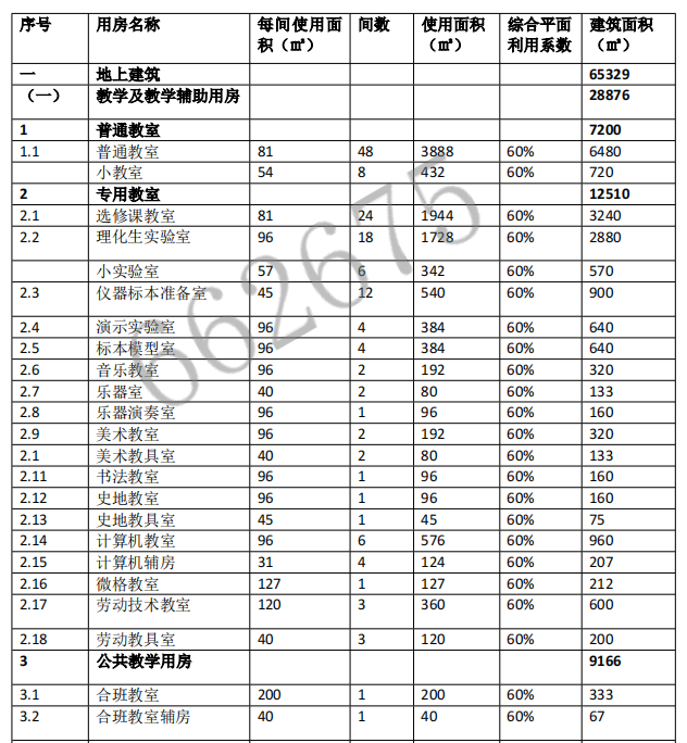 建筑功能:48班普通高中,包括教学及教学辅助用房、行政管理用房、生活服务用房和机动车停车库、设备用房、非机动车停车库、景观绿化、道路及其他室外工程等。
