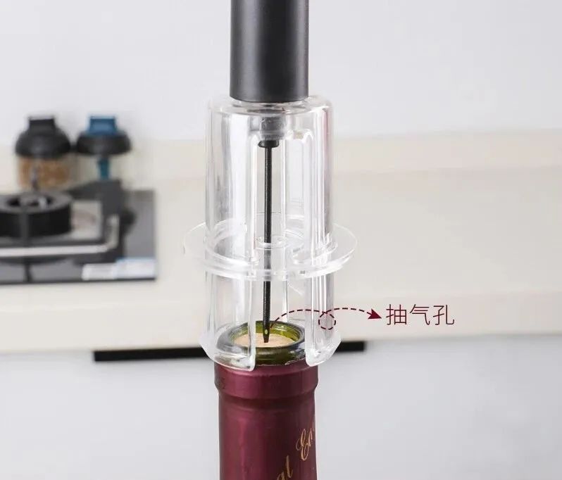 3、上下活动将空气注入瓶内,直到软木塞从瓶口滑出(通常每瓶酒4-7次即可打开);