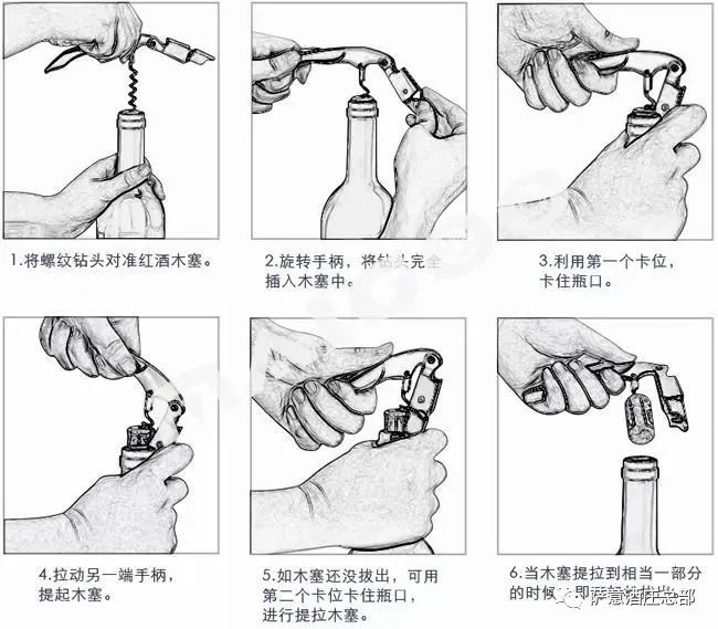 4.随着酒钻的深入,木塞会慢慢向上升至木塞被提起、拔出。
