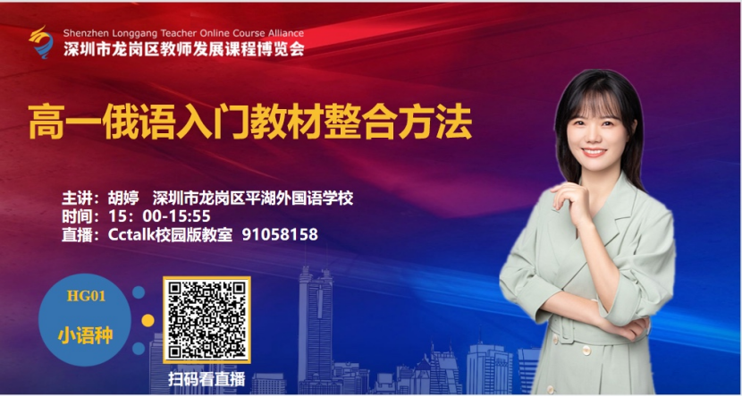 首先进行授课的是胡婷老师。胡婷老师现任教于平湖外国语学校,是一名高中俄语教师,有七年的高中俄语教学经验,其中带高三毕业班4年。曾在中国童话节系列活动中被评为优秀指导老师,在深圳市优秀录像课比赛中获得市一等奖,多次参加深圳市资源包评比活动并获得市级奖项。