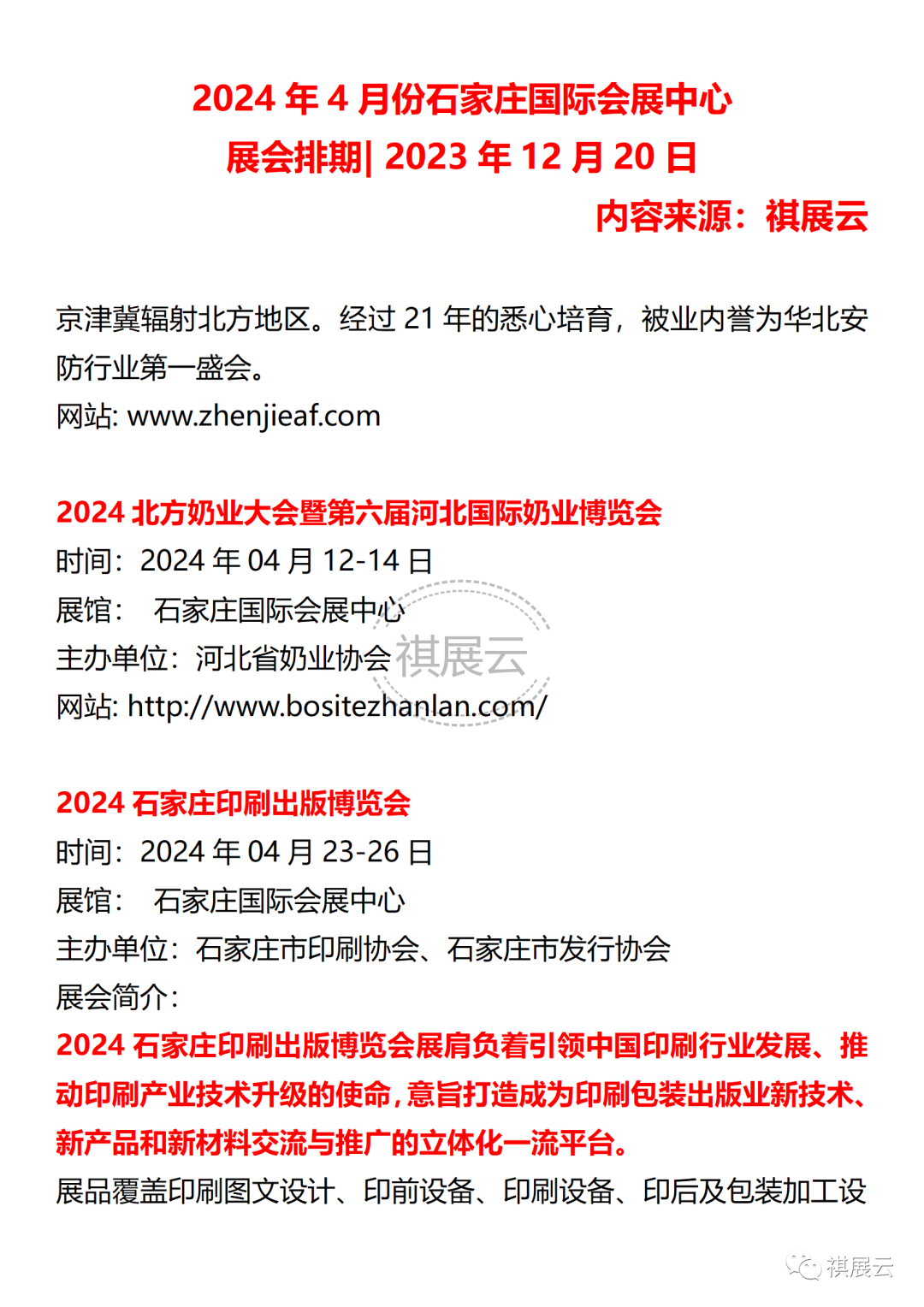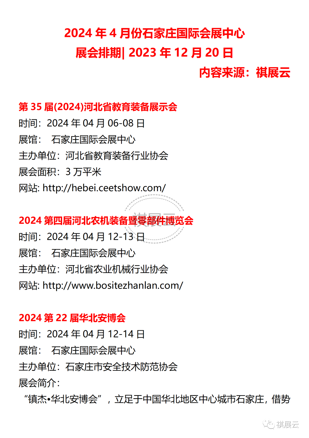 2024年4月份天津梅江国际会展中心/国家会展中心(天津)展会排期| 2023年12月10日