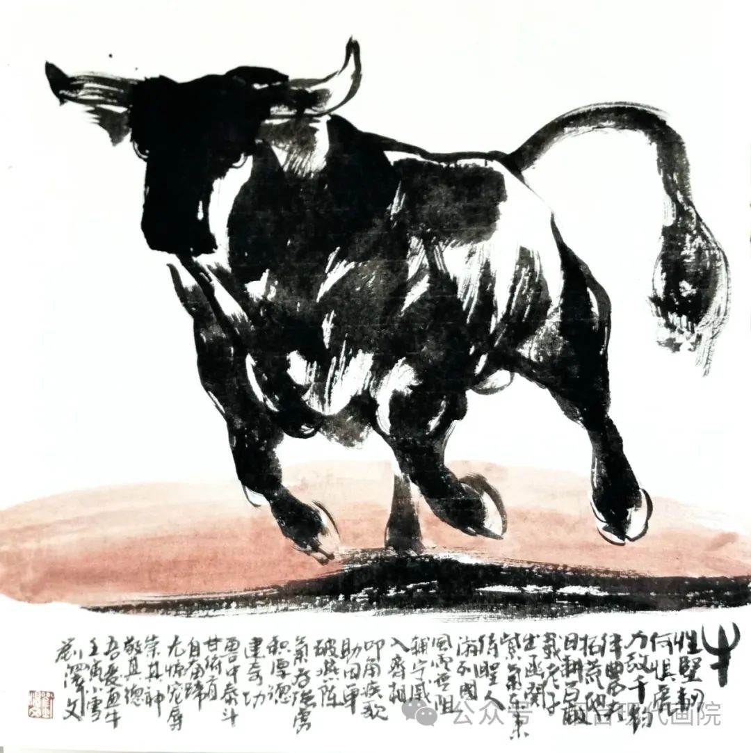 刘泽文 《墨牛图》国画 38x38cm