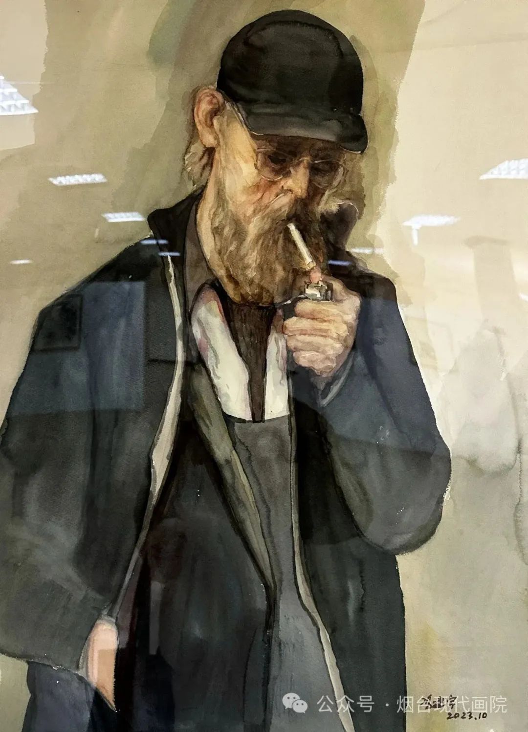 冯建宇 《拿烟斗的男子》水彩画 60x80cm